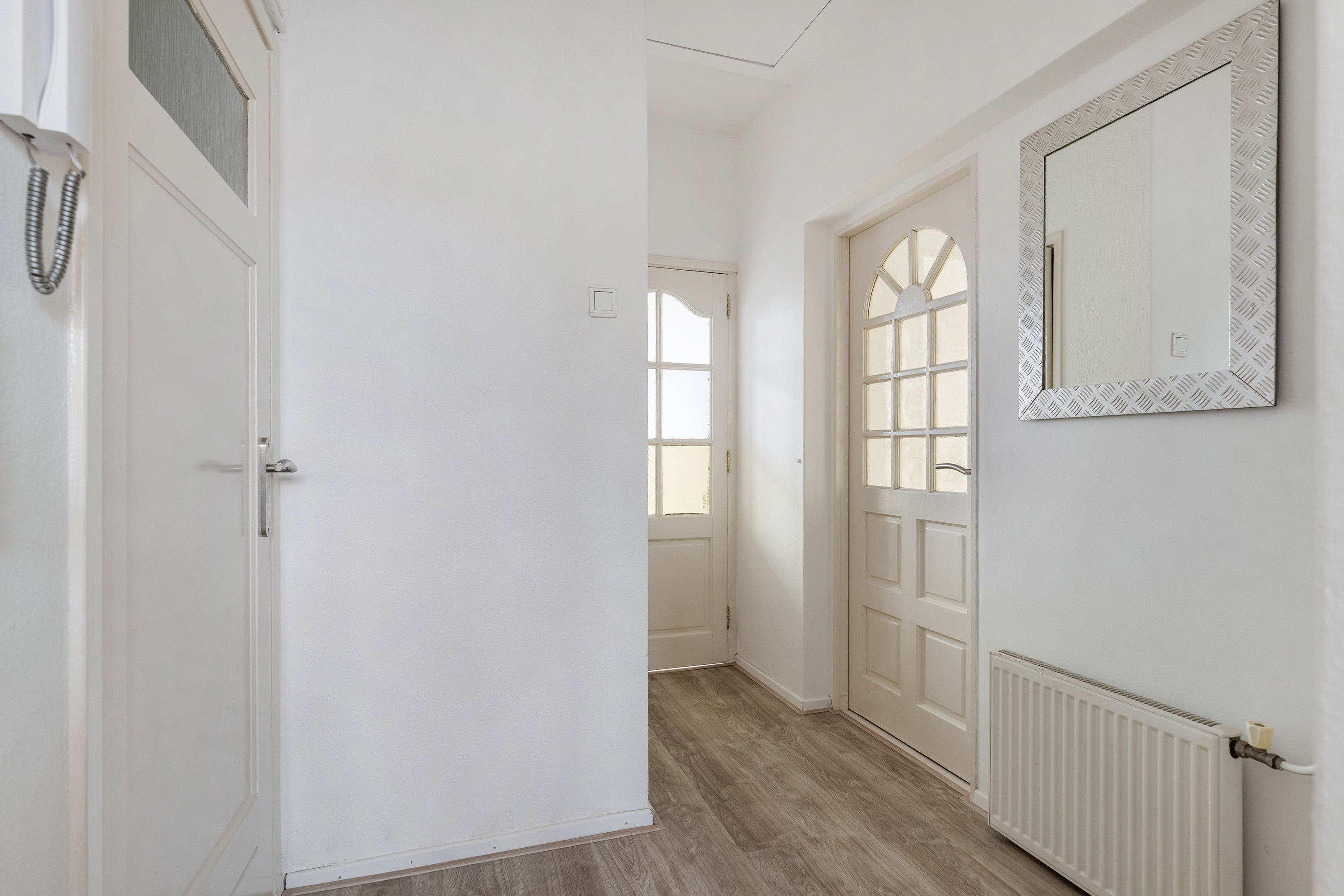 Bij binnenkomst betreed je de entree, die toegang biedt tot vrijwel alle vertrekken van de woning. Vanuit hier loop je door naar de lichte en verrassend ruime woonkamer, waar grote raampartijen zorgen voor een prettige lichtinval en een open, uitnodigende sfeer. De woonkamer biedt meer dan voldoende ruimte voor een gezellige zithoek én een eettafel.