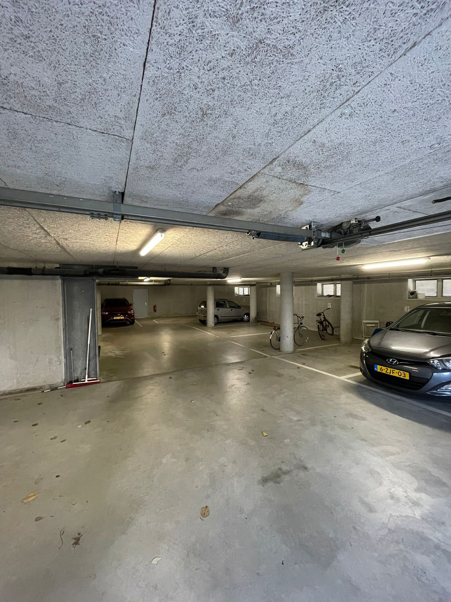 De parkeergarage beschikt over een elektrische deur en voetgangersdeur.