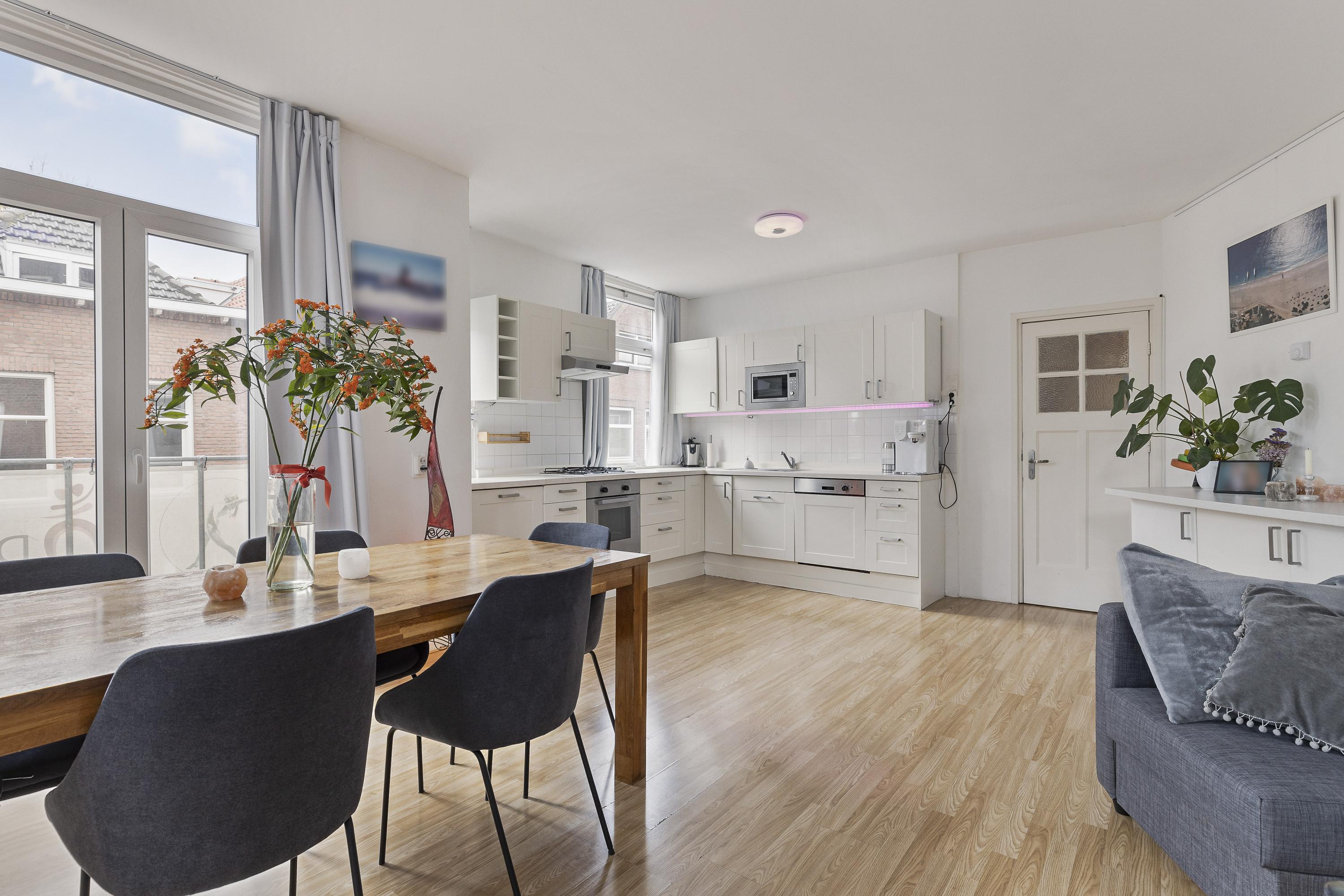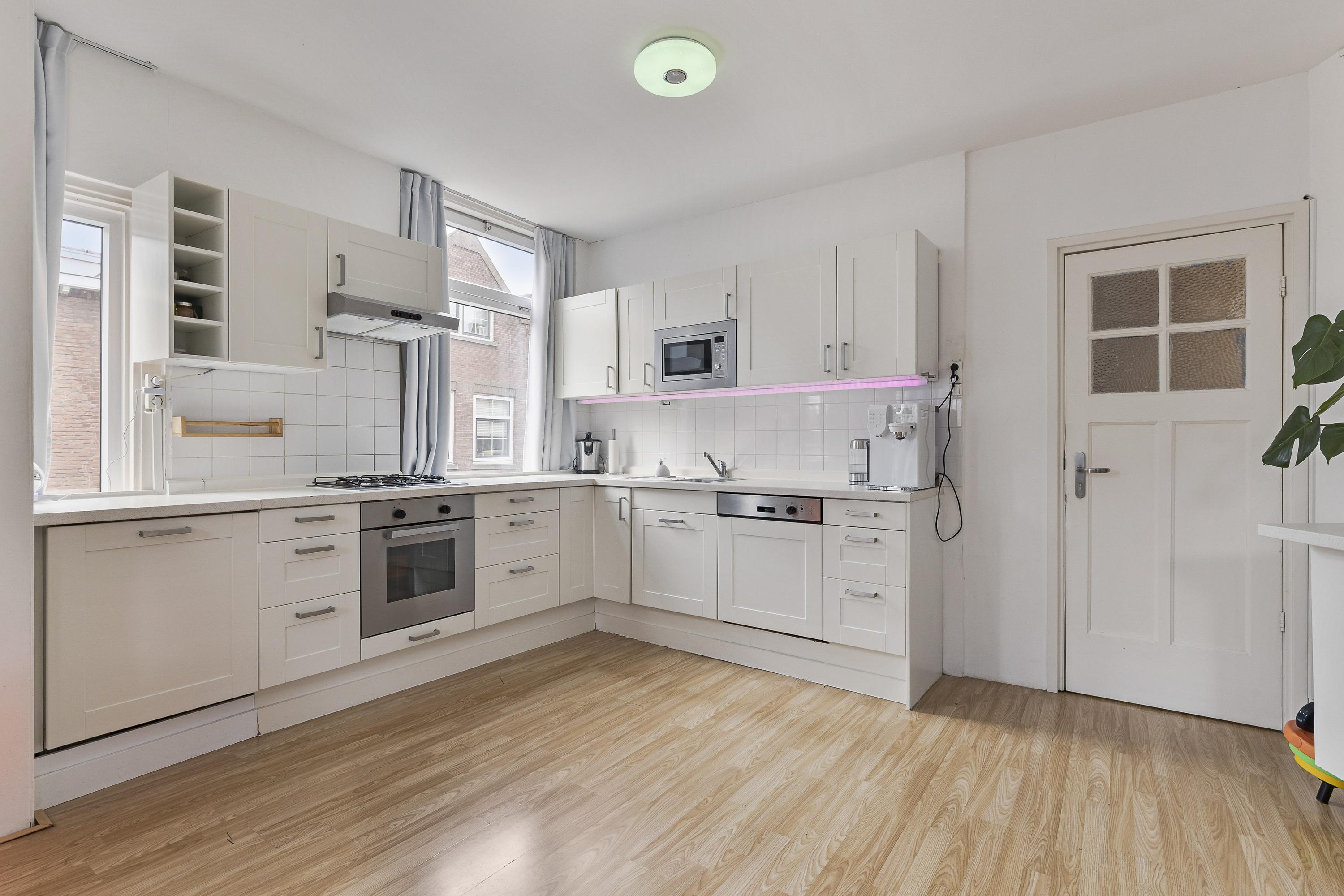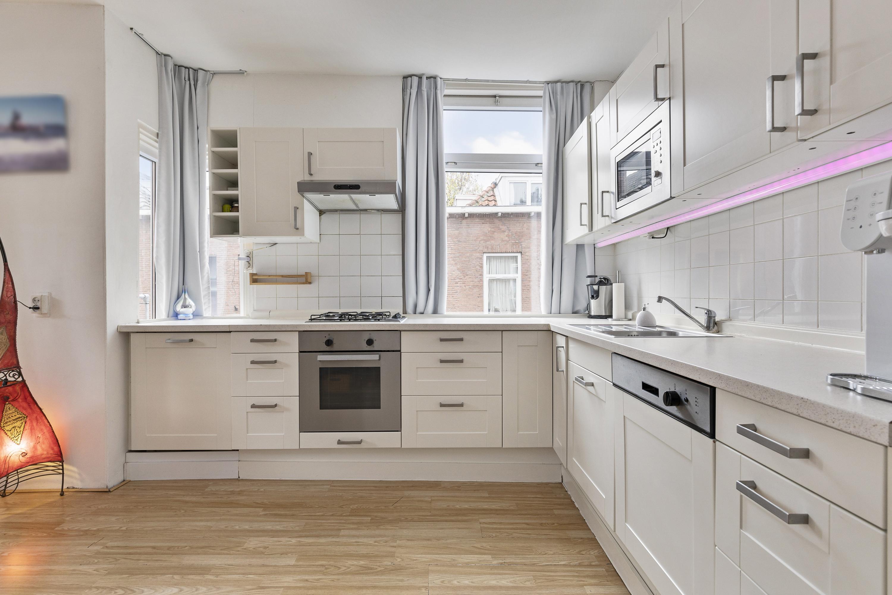 Hier bevindt zich de open woonkeuken die compleet is ingericht met onder andere een koelkast, vriezer, magnetron, vaatwasser en gasfornuis. Een fijne plek om te koken, te eten en samen te zijn.