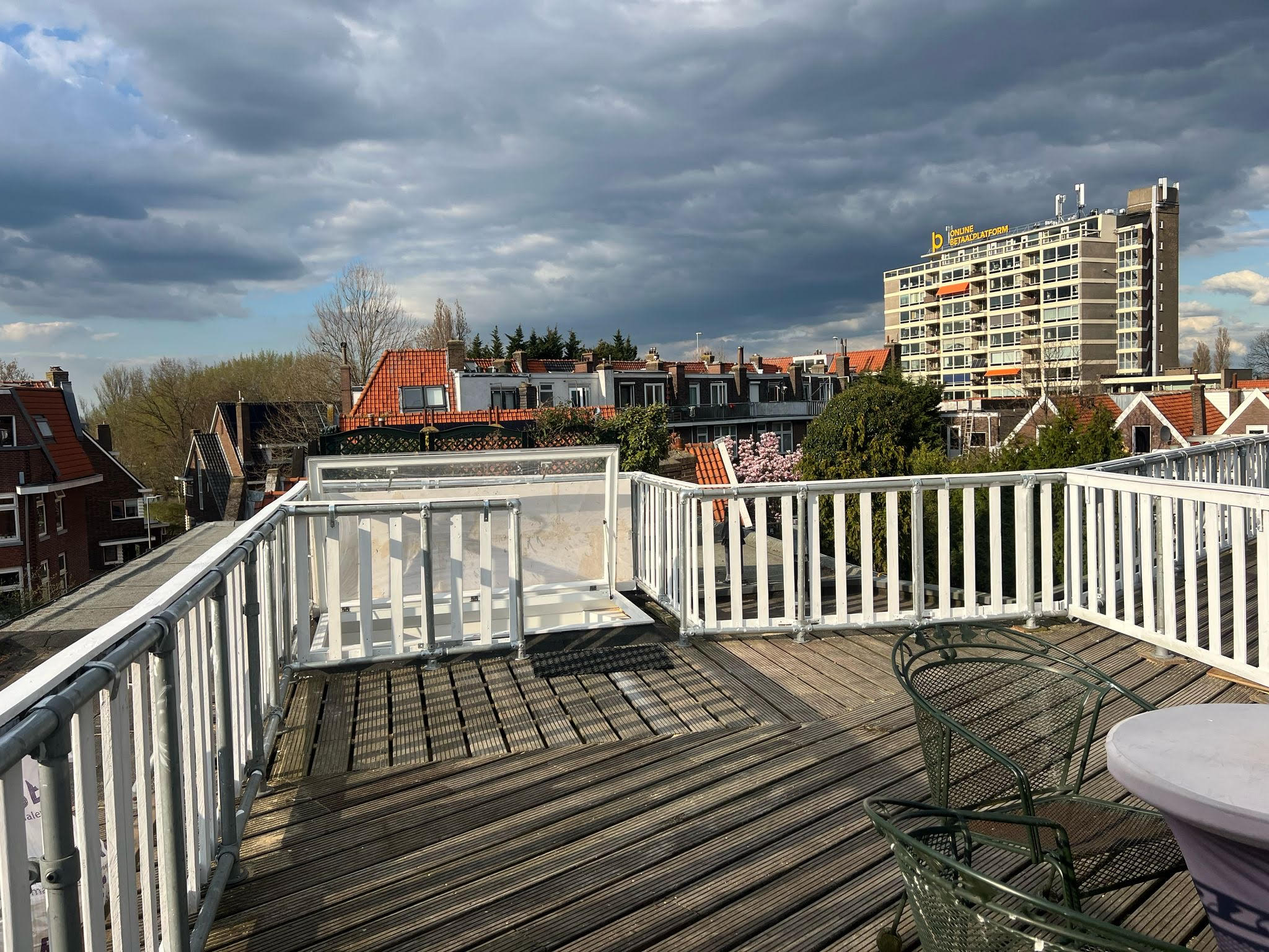 Via een vaste trap bereik je het riante dakterras van circa 30 m². Hier geniet je volop van de zon en van het weidse uitzicht over de wijk. Een heerlijke plek voor een borrel, barbecue, of om gewoon even helemaal tot rust te komen.