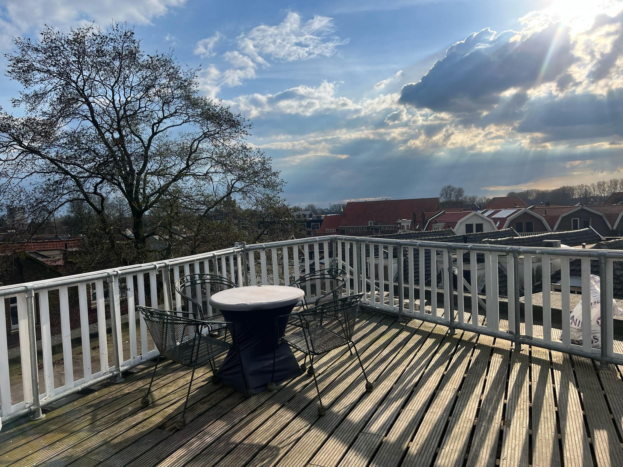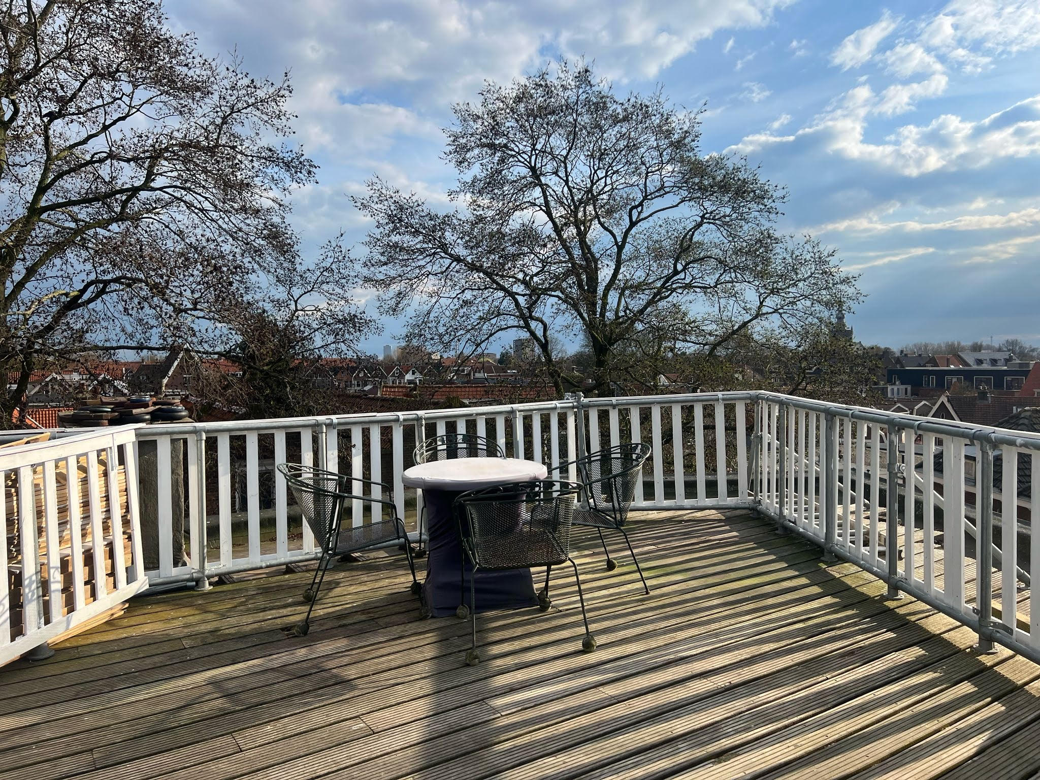Op deze verdieping liggen nog twee ruime, prettig lichte slaapkamers. Via de trapopgang kom je vervolgens op het absolute hoogtepunt van deze woning: het dakterras.