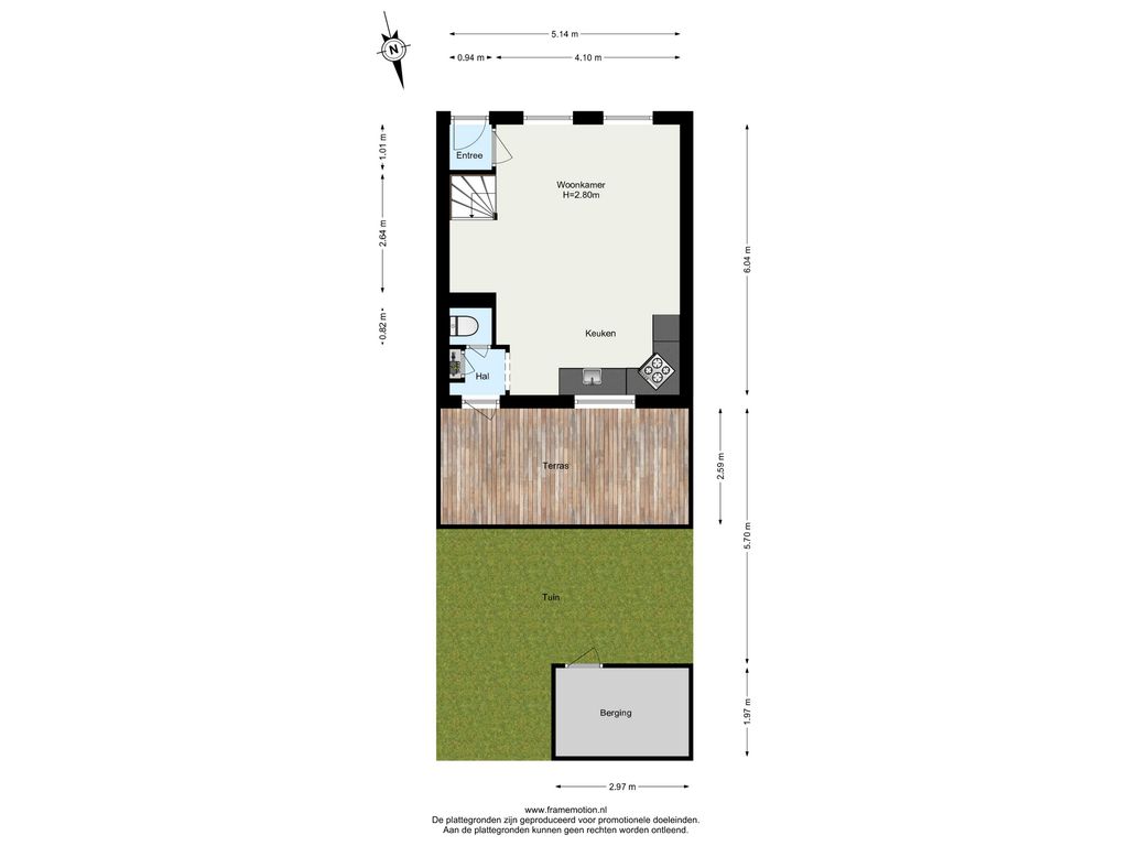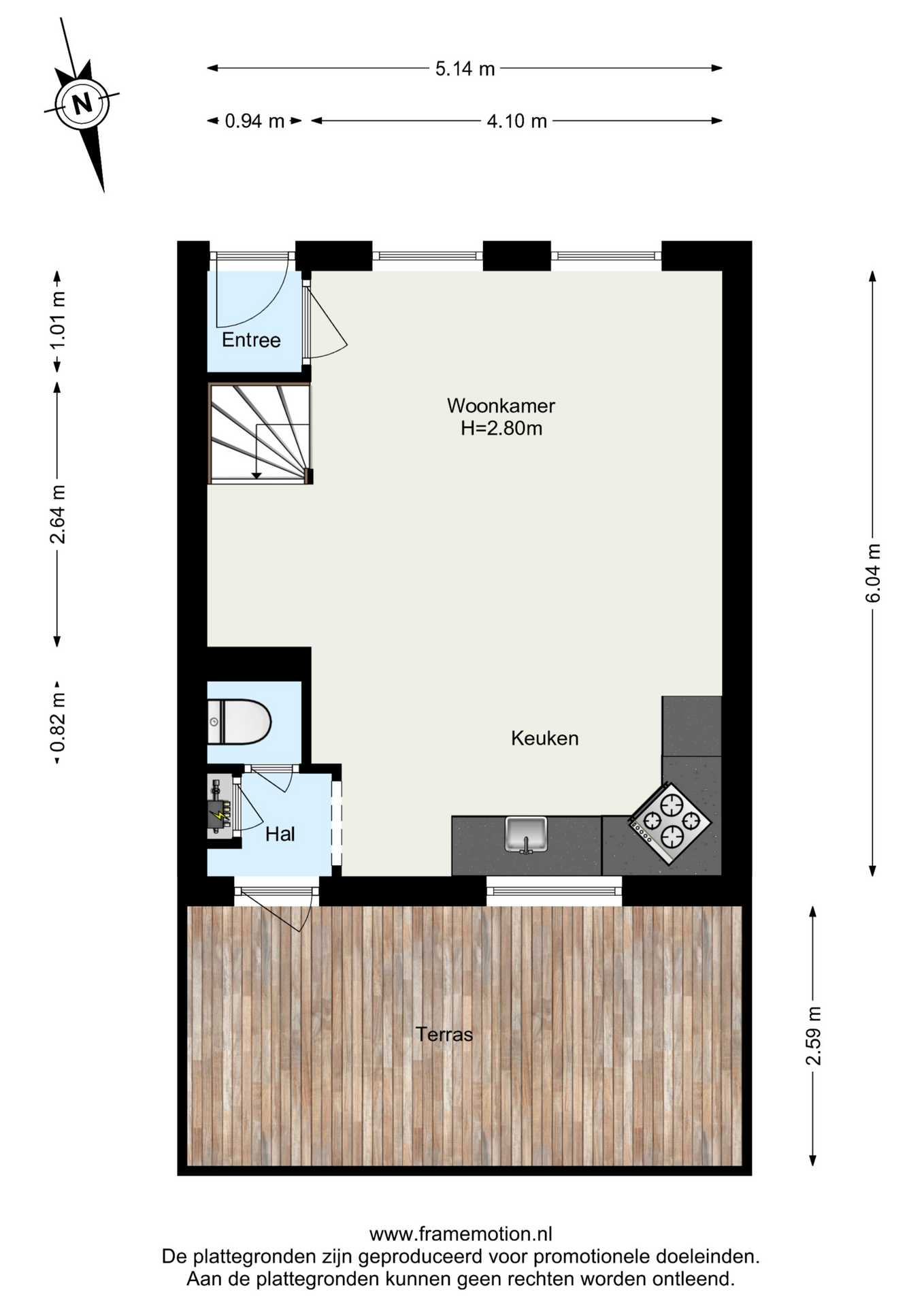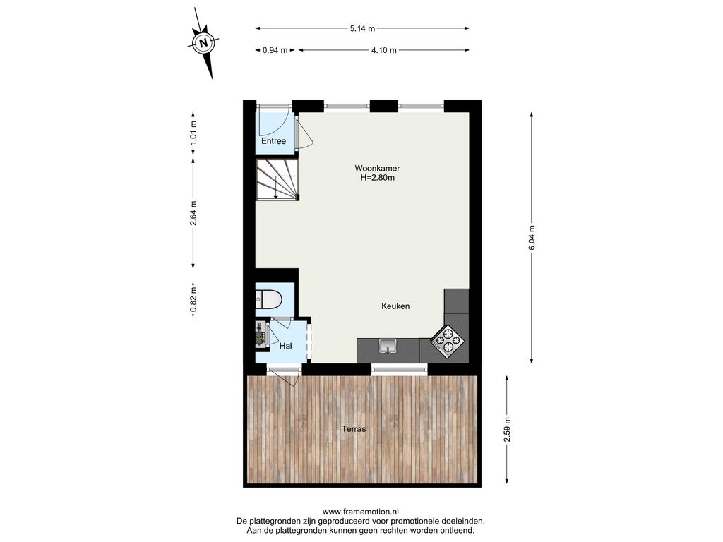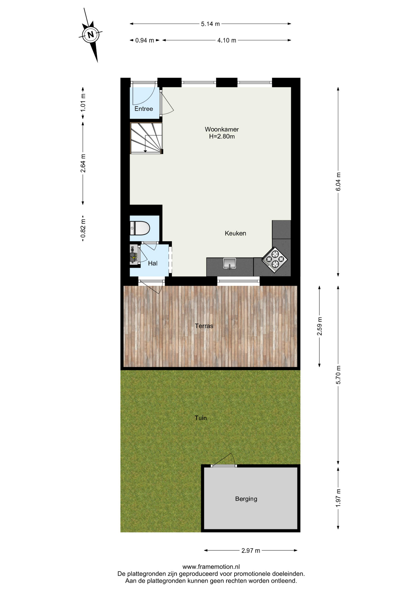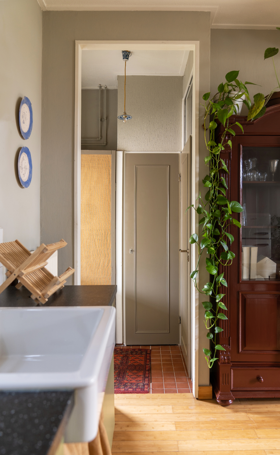 Entree, hal, woonkamer met open keuken, toilet met vrij hangend closet en achterdeur