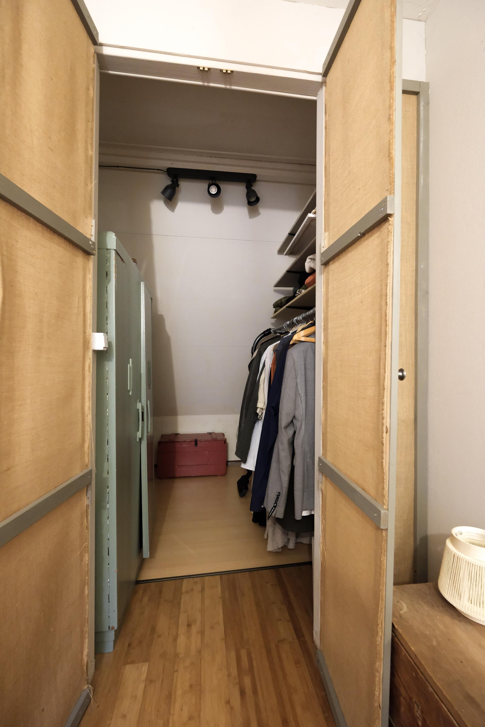 Overloop, ruime slaapkamer met inloopkast met ruimte voor wasmachine en droger,