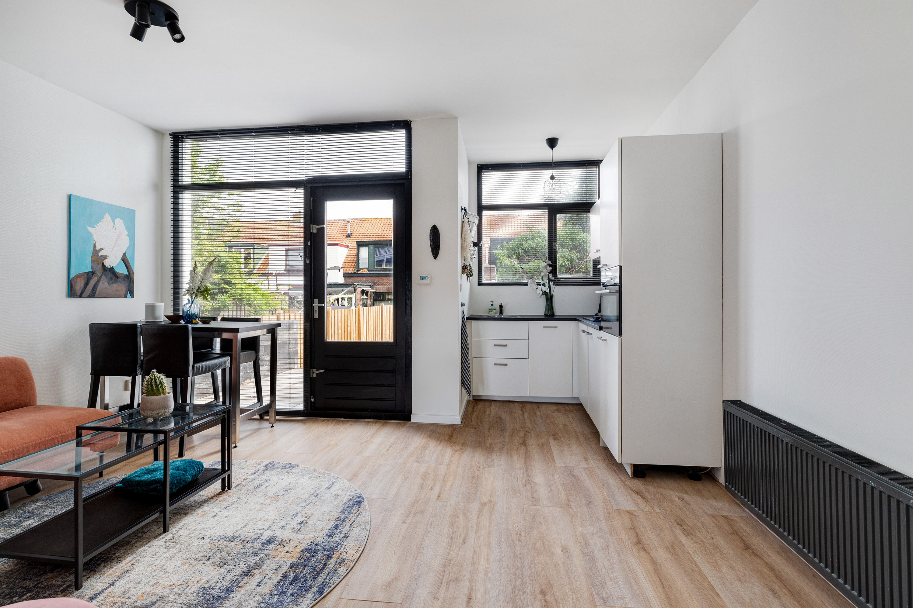 Dankzij de praktische indeling en de ligging aan de tuin kunt u genieten van een lichte woonkamer met een mooi uitzicht op de tuin. Via de achterdeur loop je zo je eigen tuin in; een heerlijke plek van circa 12 meter diep, waar je eindeloos kunt genieten van zon, rust en privacy.