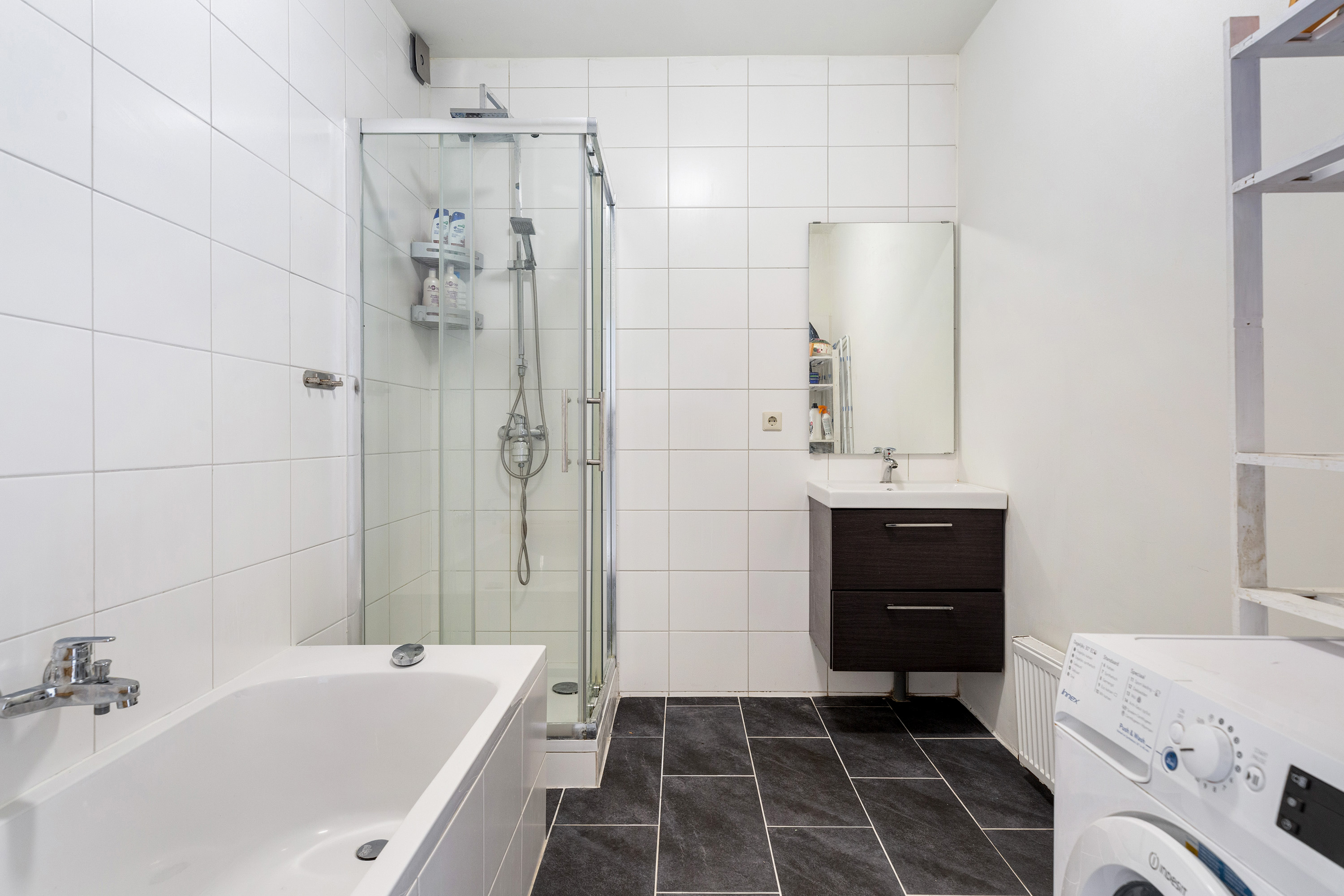 Aangrenzend vind je de nette badkamer, voorzien van een bad, douche, wastafel en toilet. Tevens is hier een handige wasruimte aanwezig, met aansluitingen voor de wasmachine.
