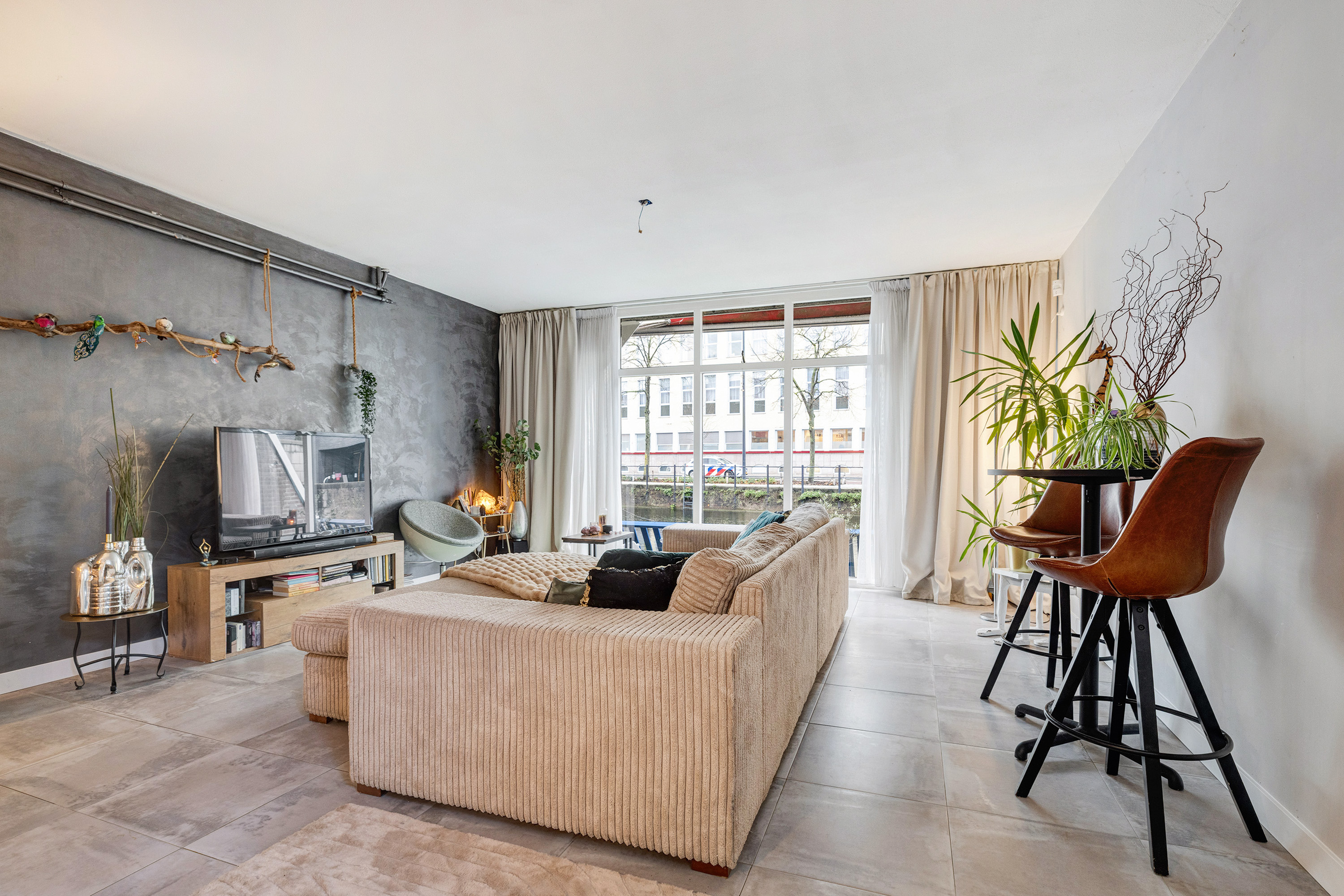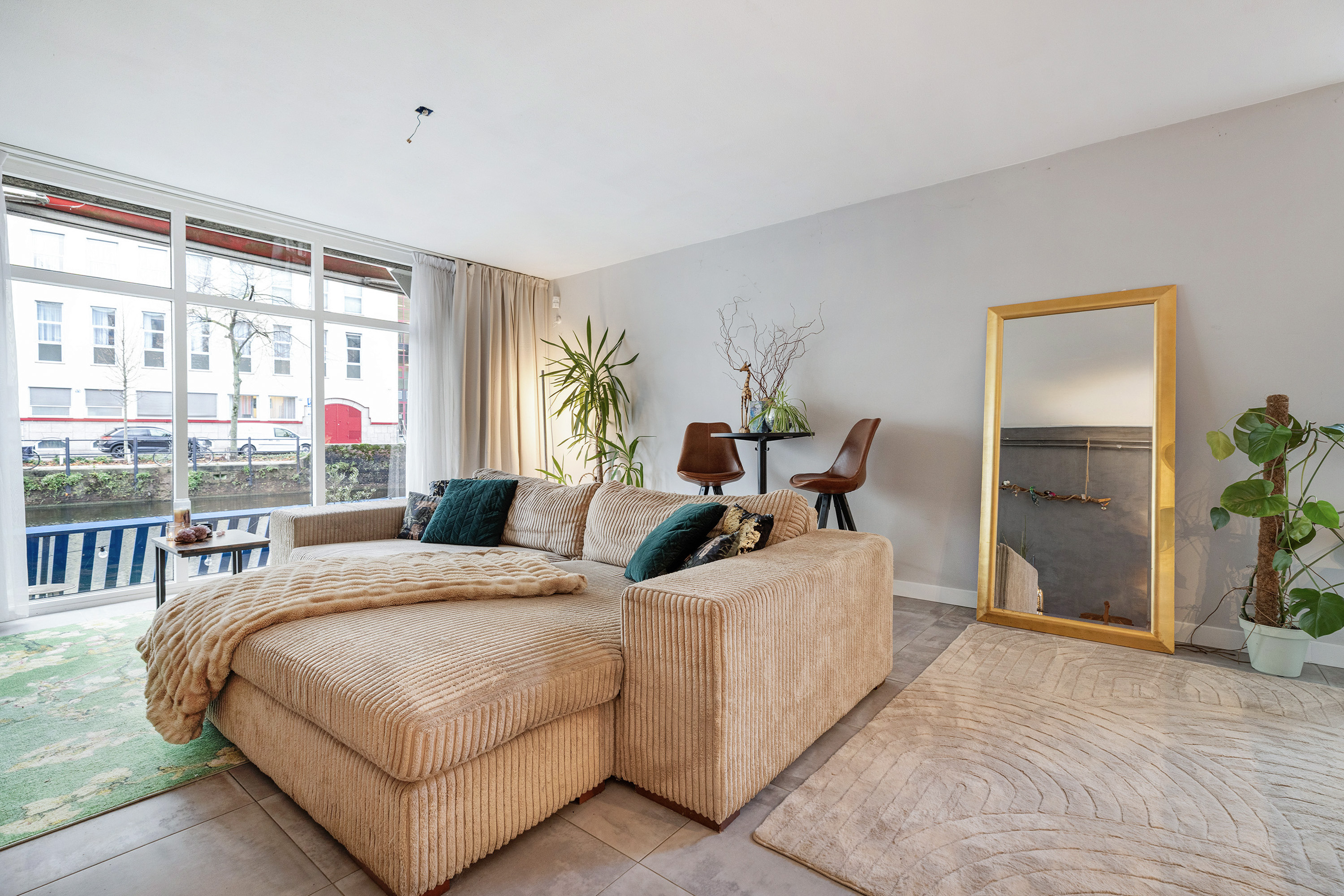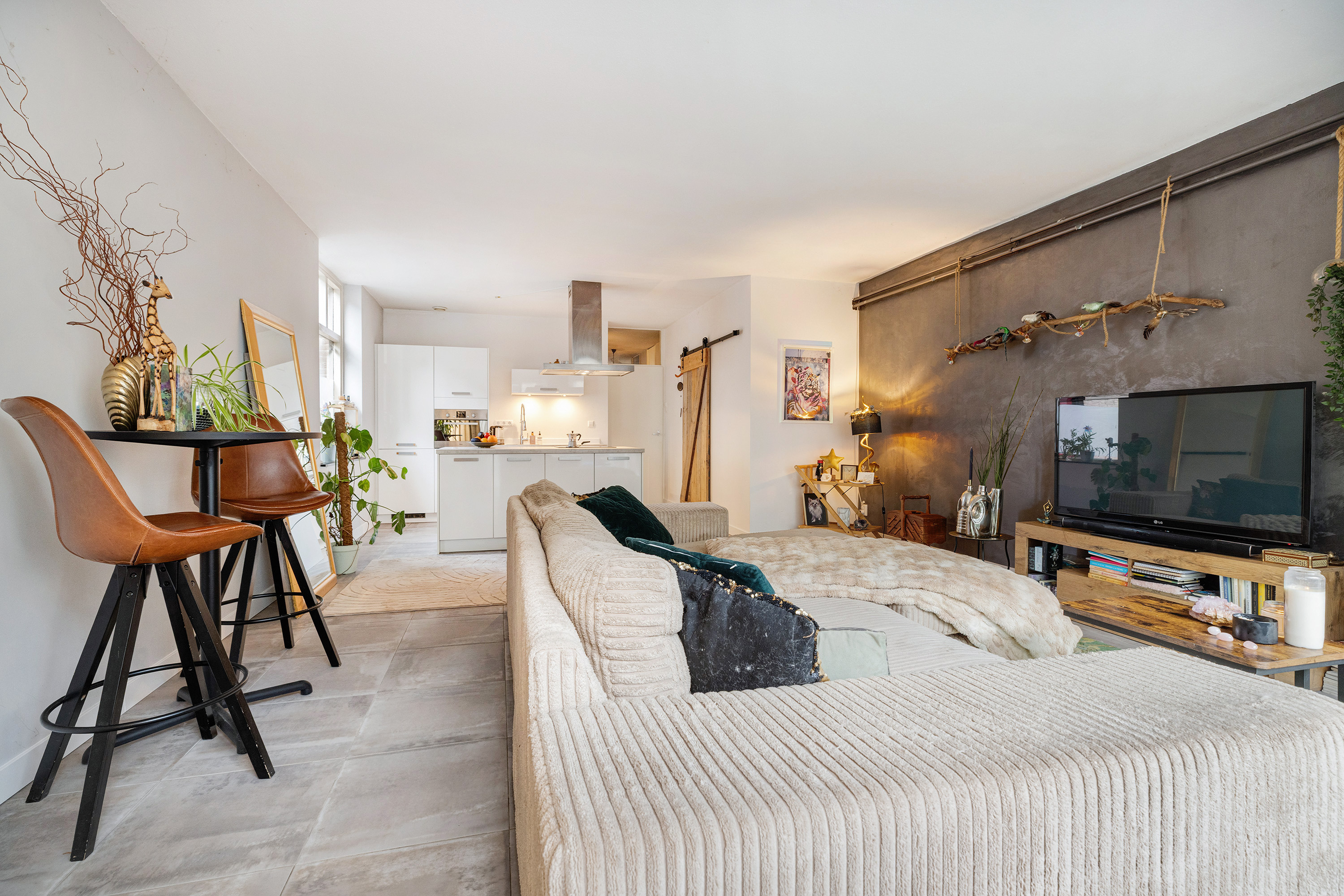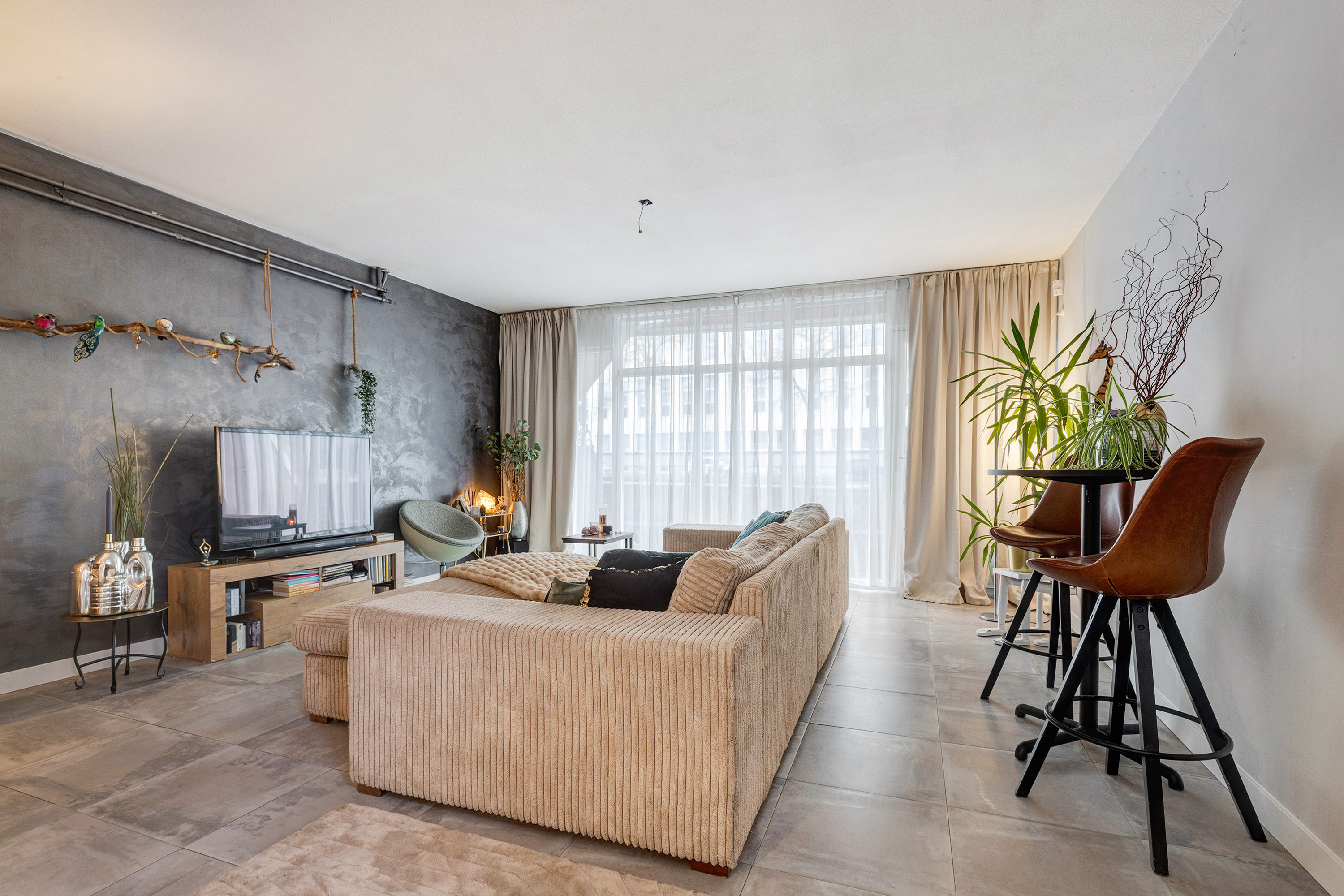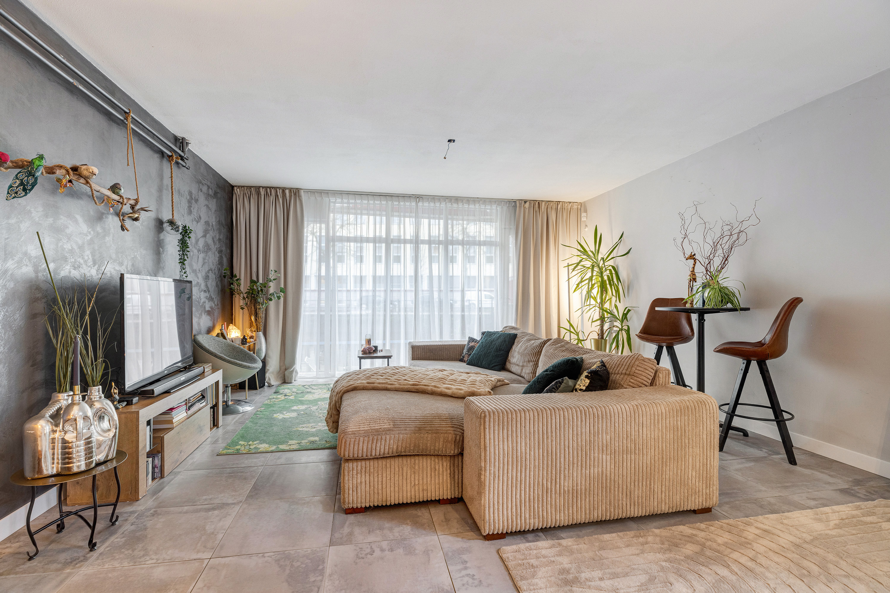 Aan de voorzijde ligt de lichte woonkamer van ruim formaat. Dankzij de grote glazen pui valt er volop daglicht binnen en heb je direct toegang tot het balkon, waar je heerlijk van de buitenruimte kunt genieten, perfect voor jouw ochtendkoffie of een ontspannen avond.