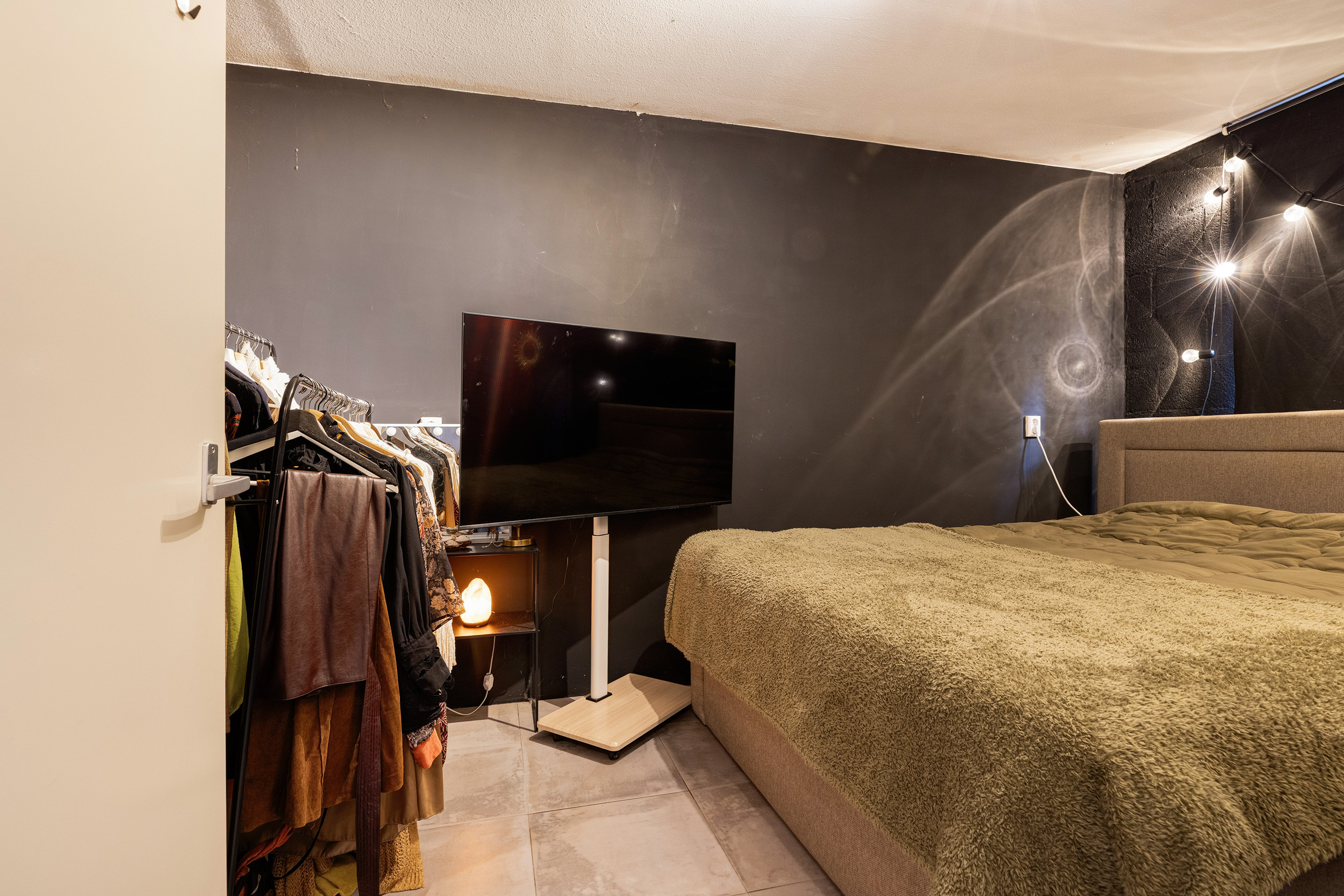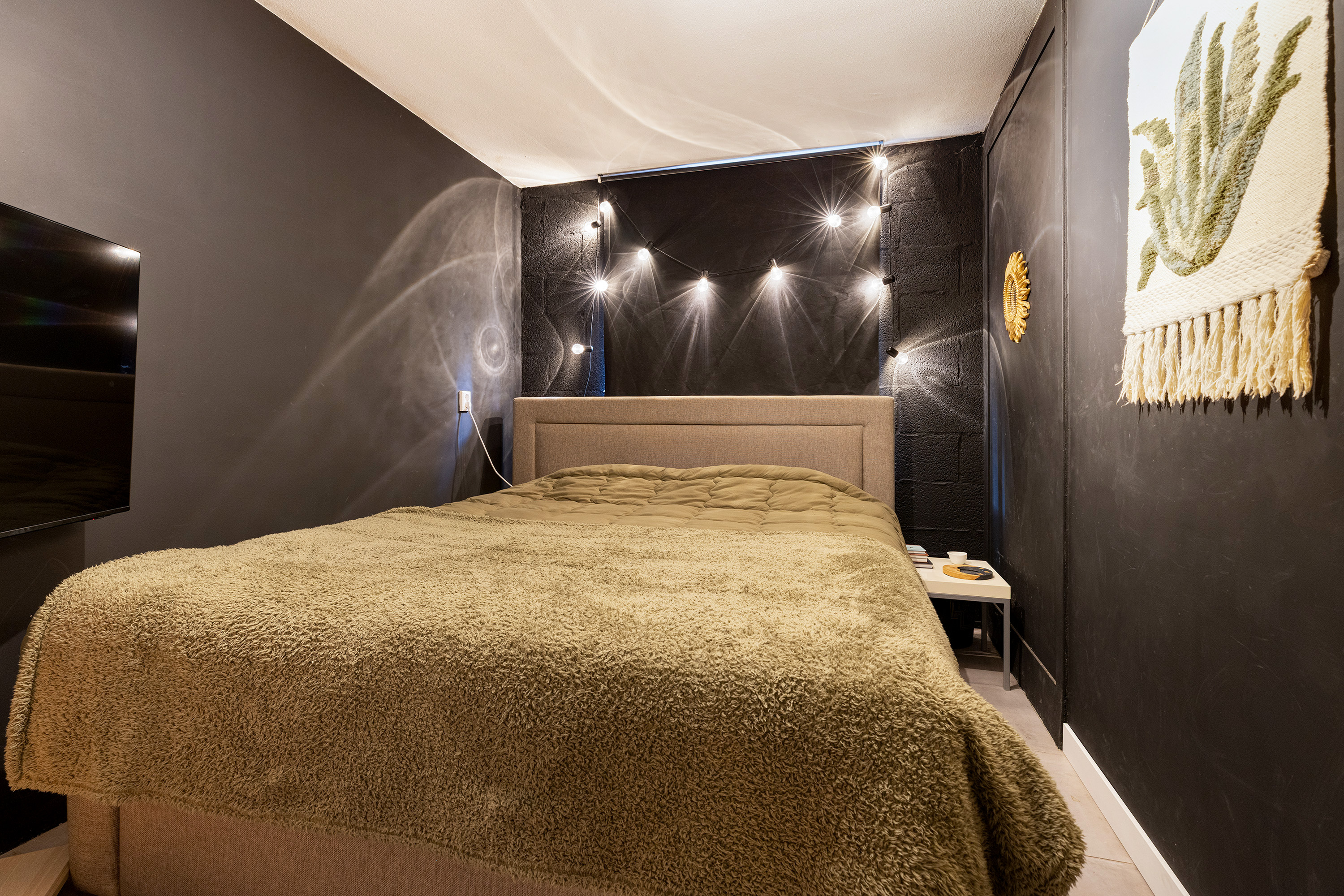Aan de rustige voorzijde van het appartement bevindt zich de ruime slaapkamer, welke voldoende plek biedt voor een tweepersoonsbed én een grote kast. Direct naast de slaapkamer ligt de badkamer, uitgerust met een ligbad met douche, wastafelmeubel en een wasmachineaansluiting.