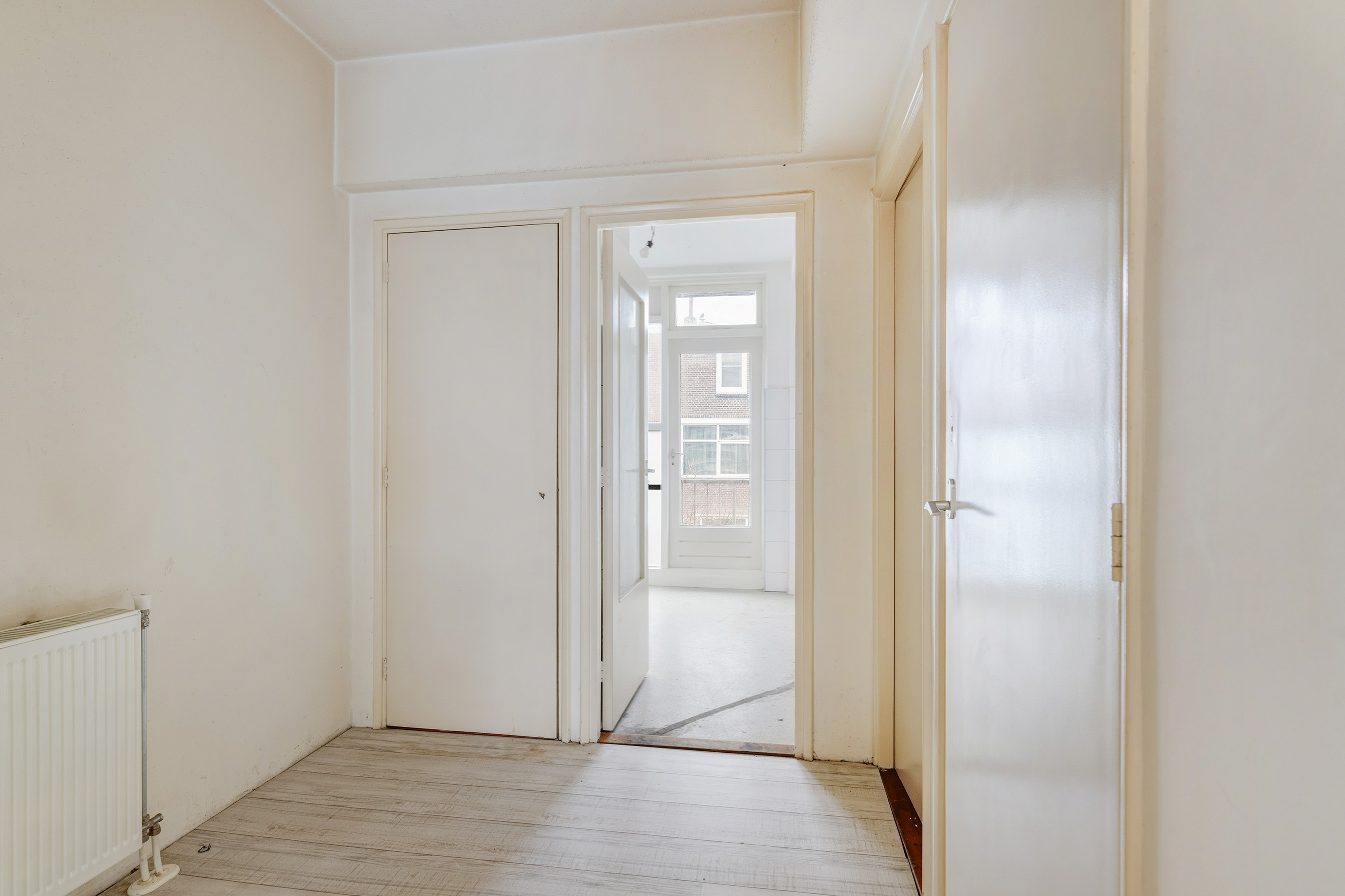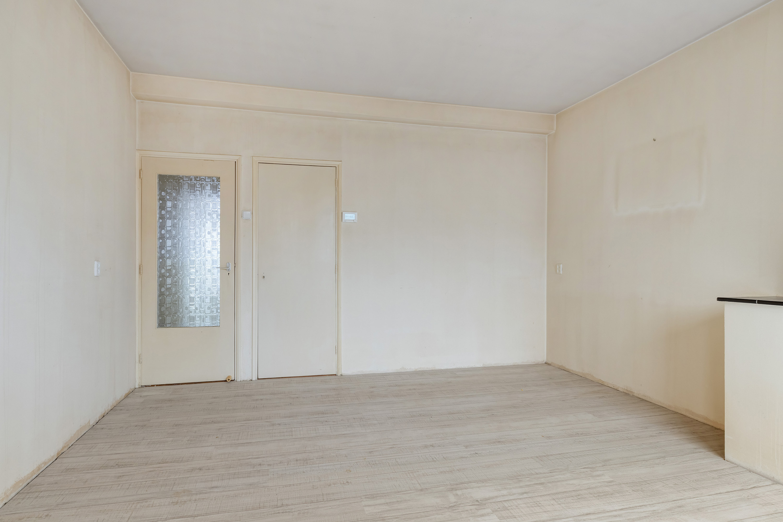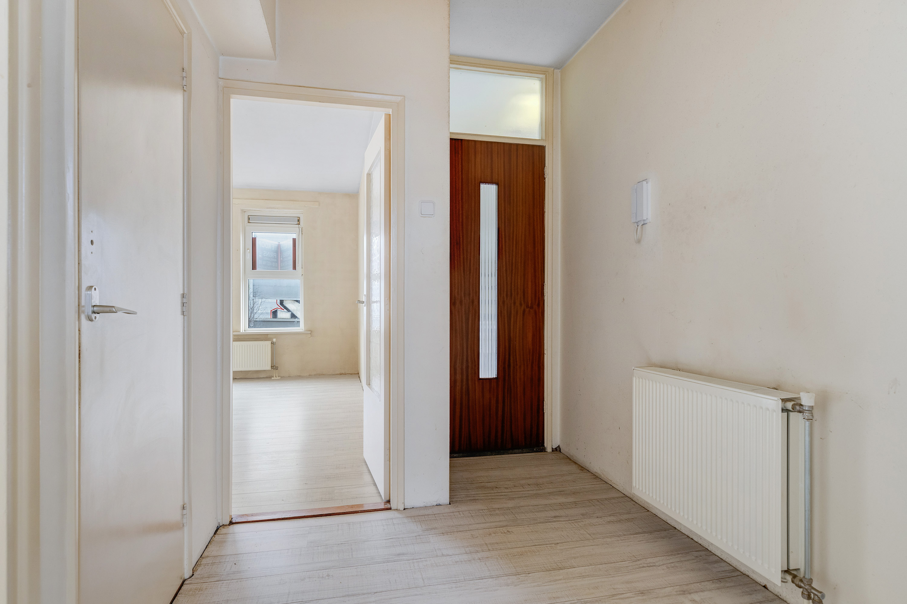 Het appartement is praktisch ingedeeld en biedt een comfortabele woonruimte met veel lichtinval. Via de entree kom je binnen in de hal die toegang geeft tot de verschillende vertrekken. De woonkamer is ruim opgezet en dankzij de grote raampartijen heerlijk licht. Met een plafondhoogte van circa 2,64 meter voelt de ruimte extra ruim aan. Hier is volop plek voor een gezellige zithoek én een eethoek.