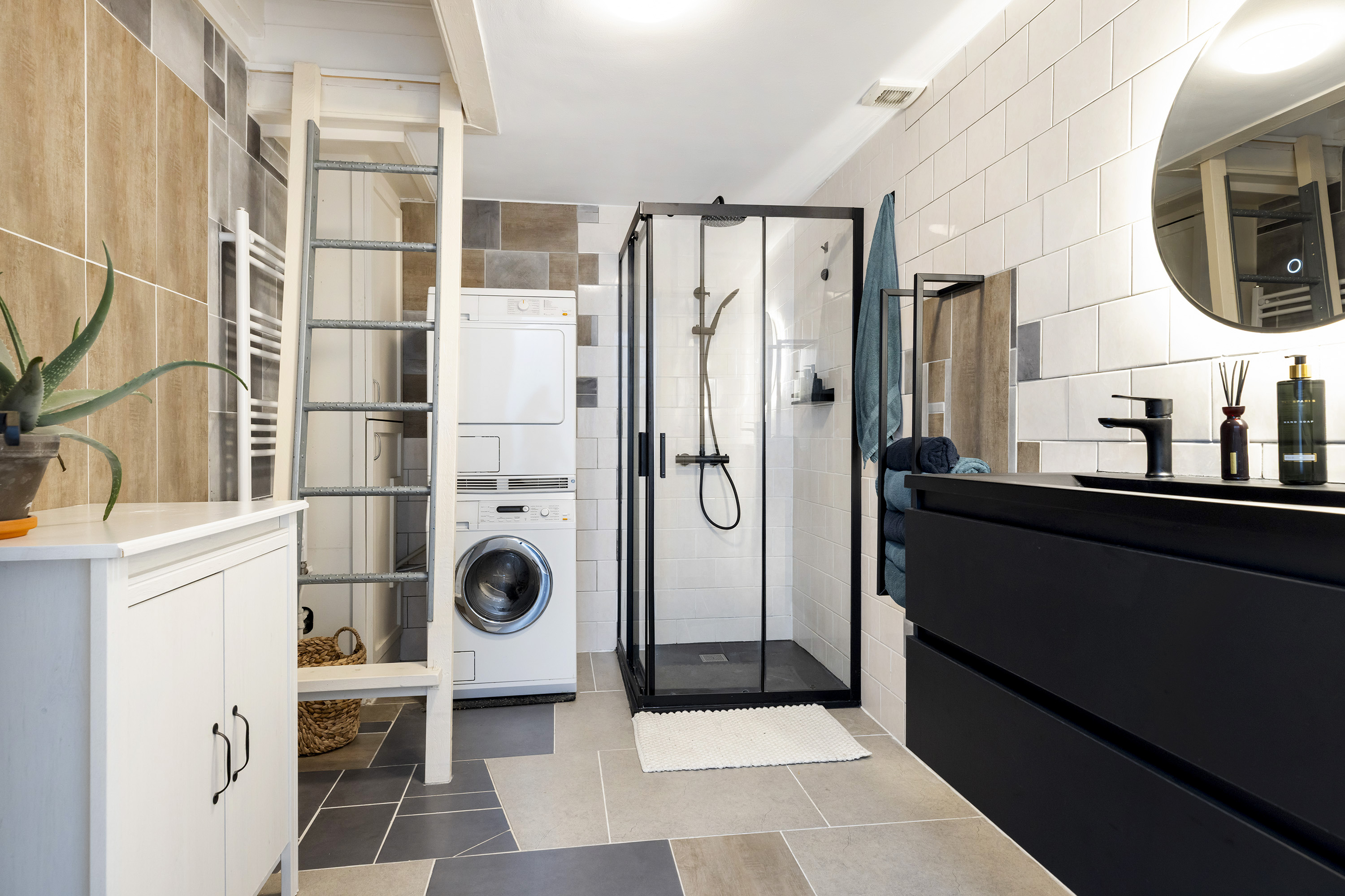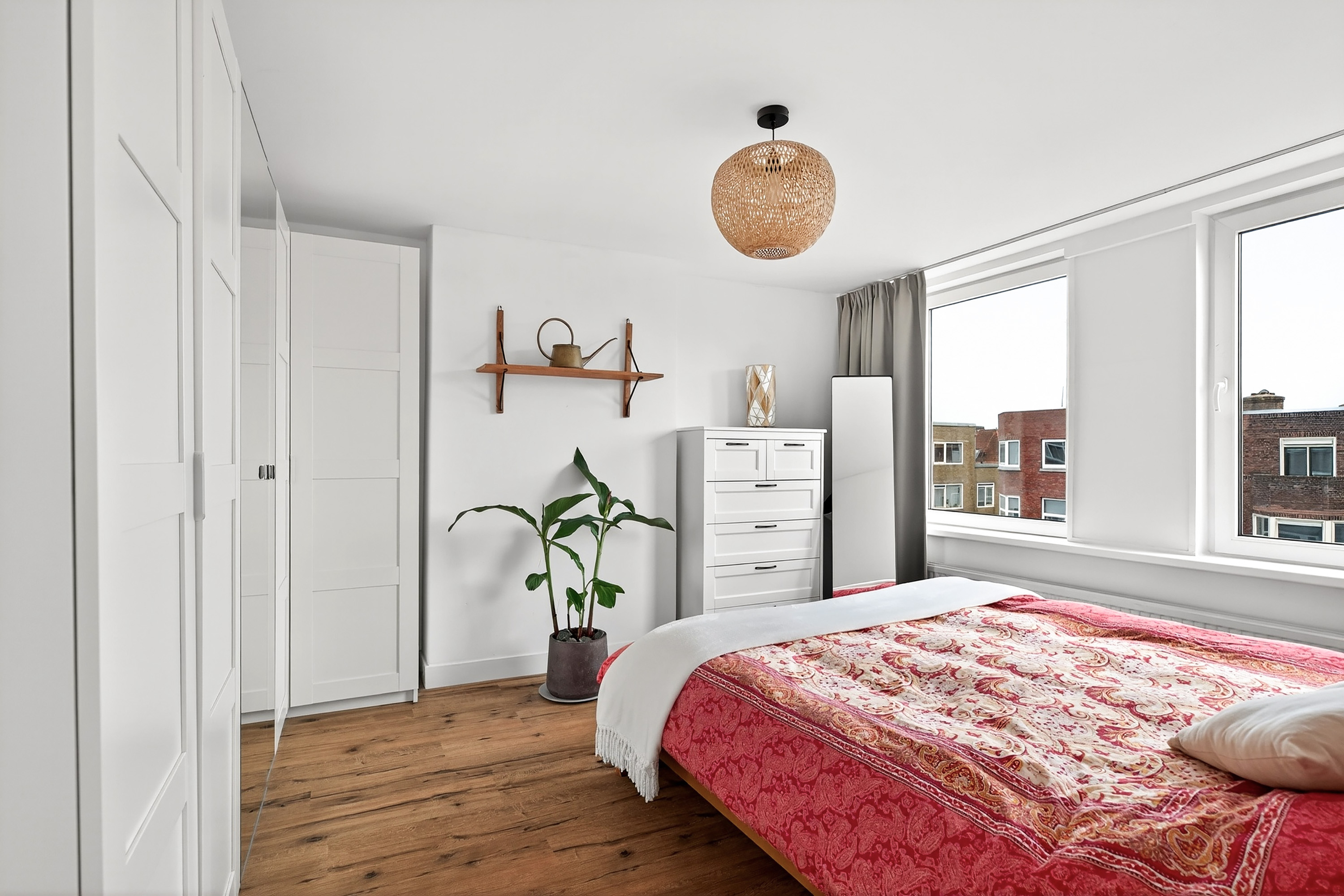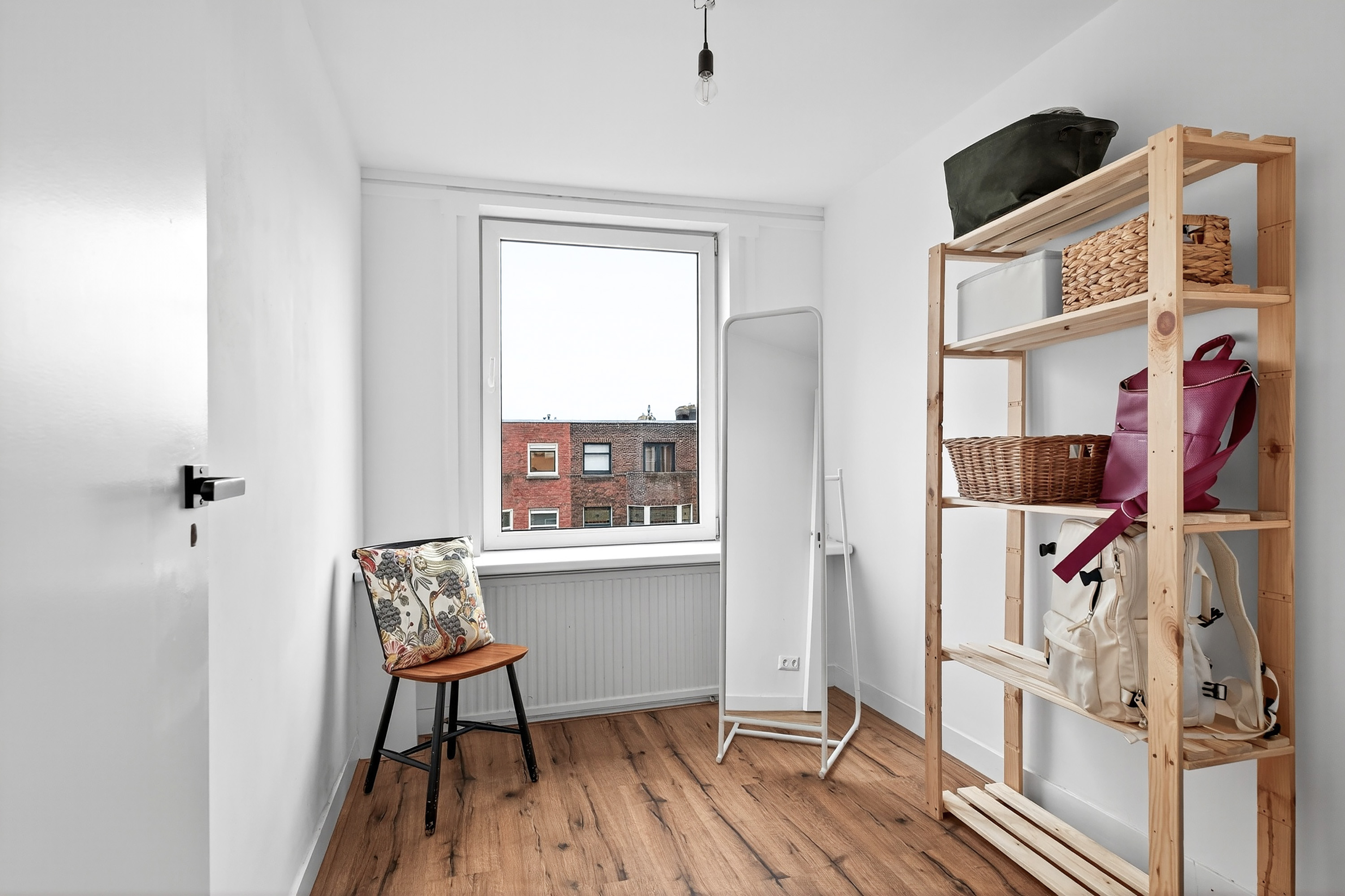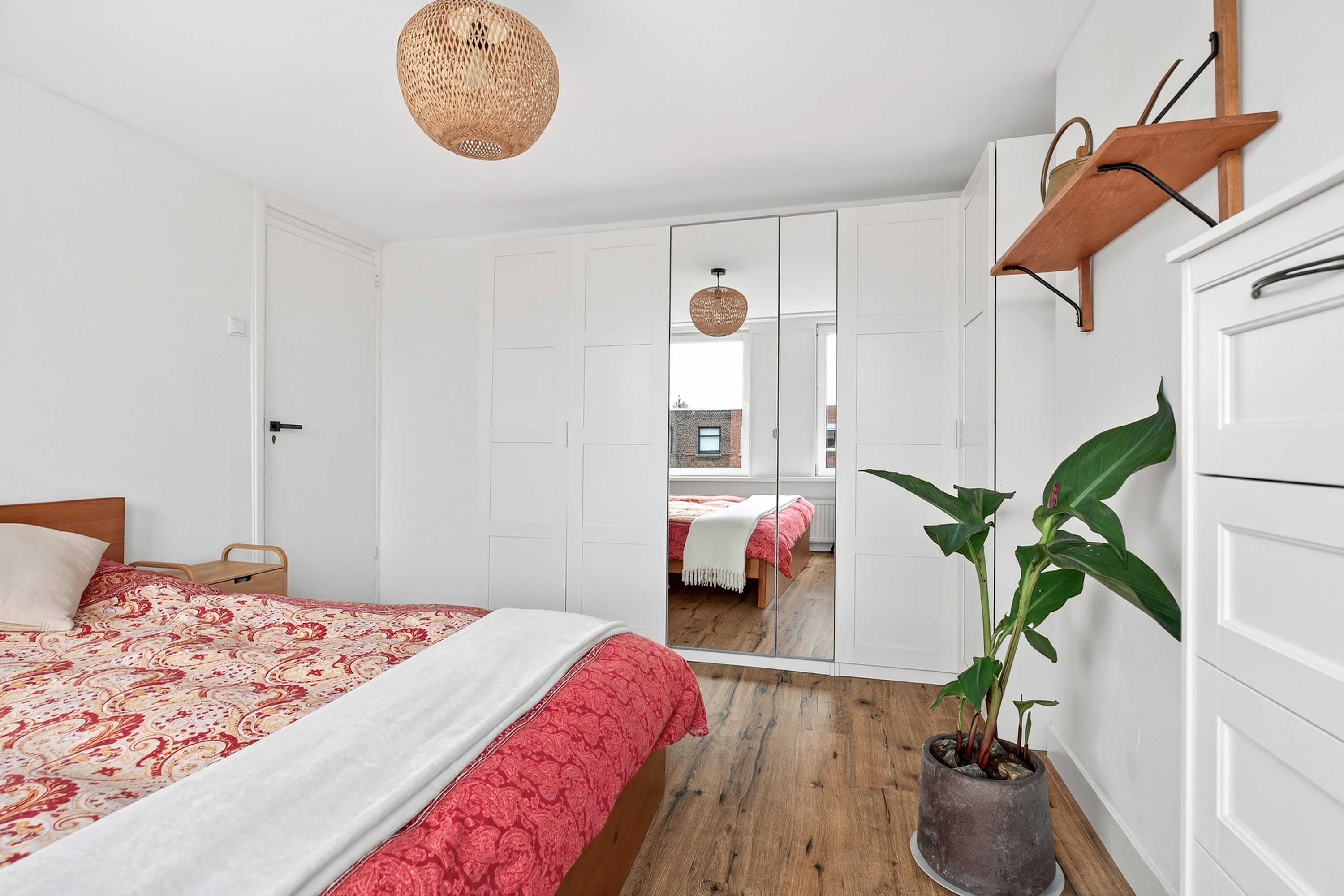De derde verdieping beschikt over twee slaapkamers, waaronder een royale kamer aan de voorzijde met een nokhoogte van 2,20 meter. Deze ruimte is perfect als hoofdslaapkamer. Daarnaast is er een tweede, compacte slaapkamer. Verder vind je hier de badkamer, voorzien van een dubbele wastafel en douche.