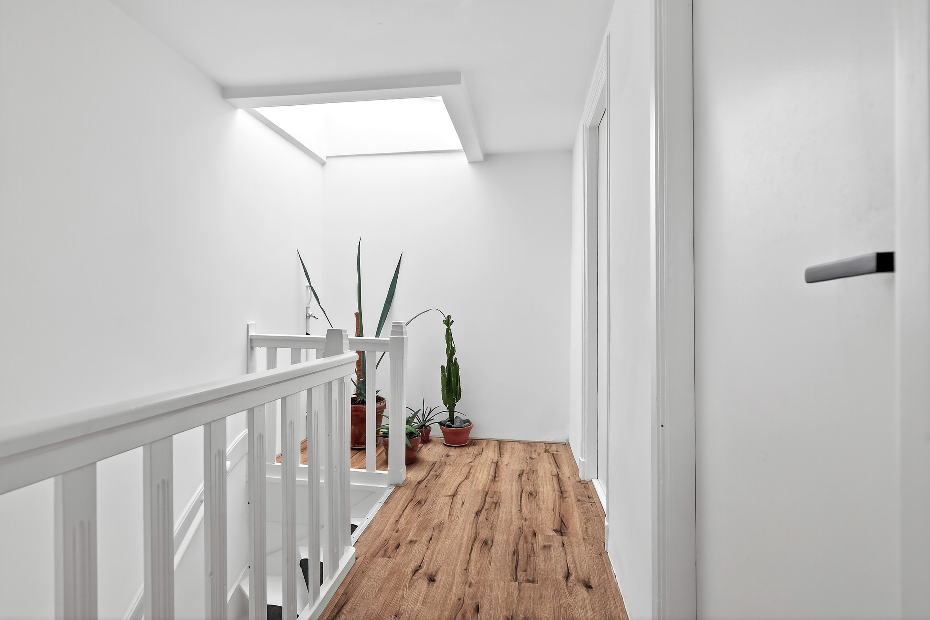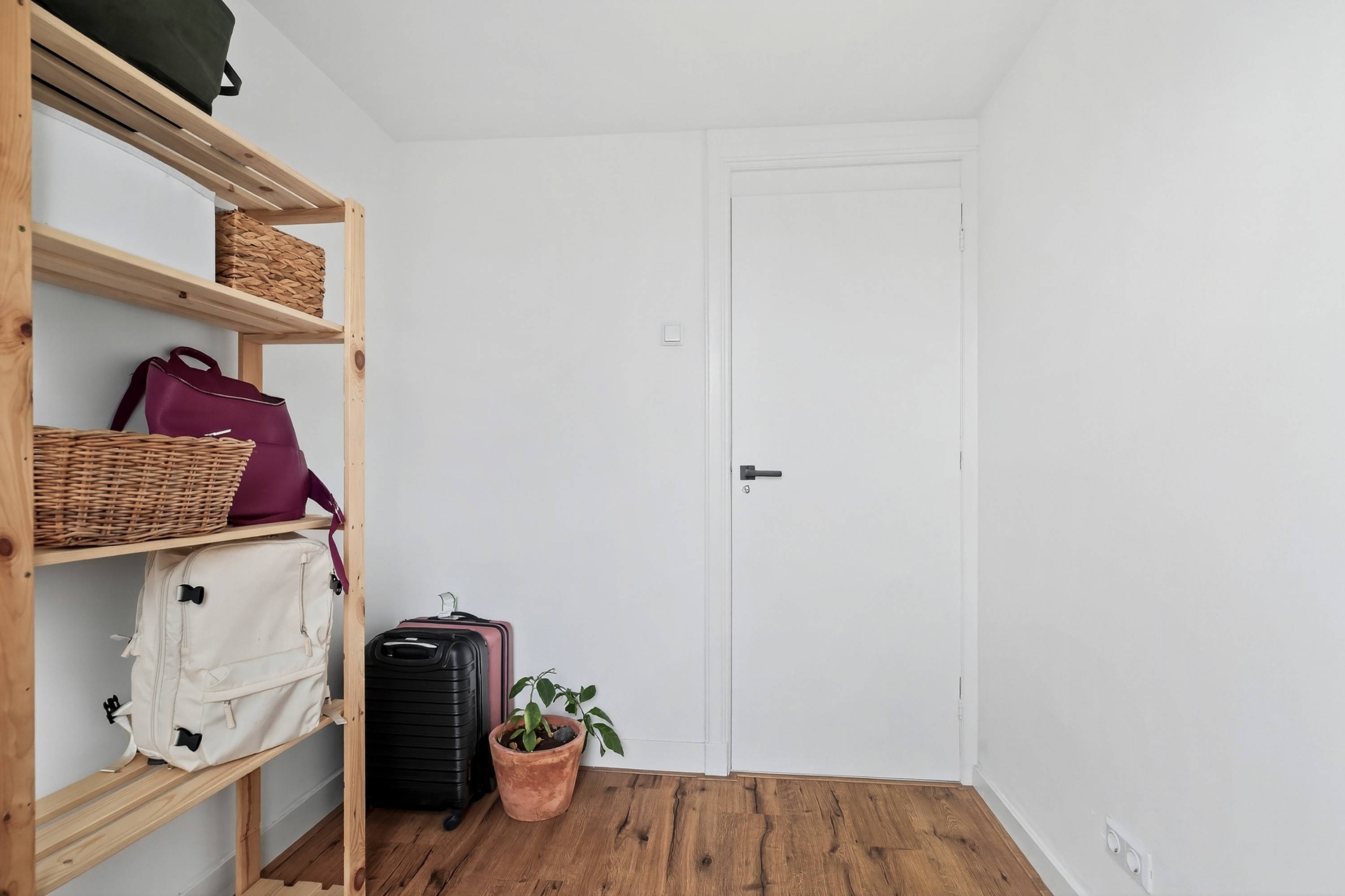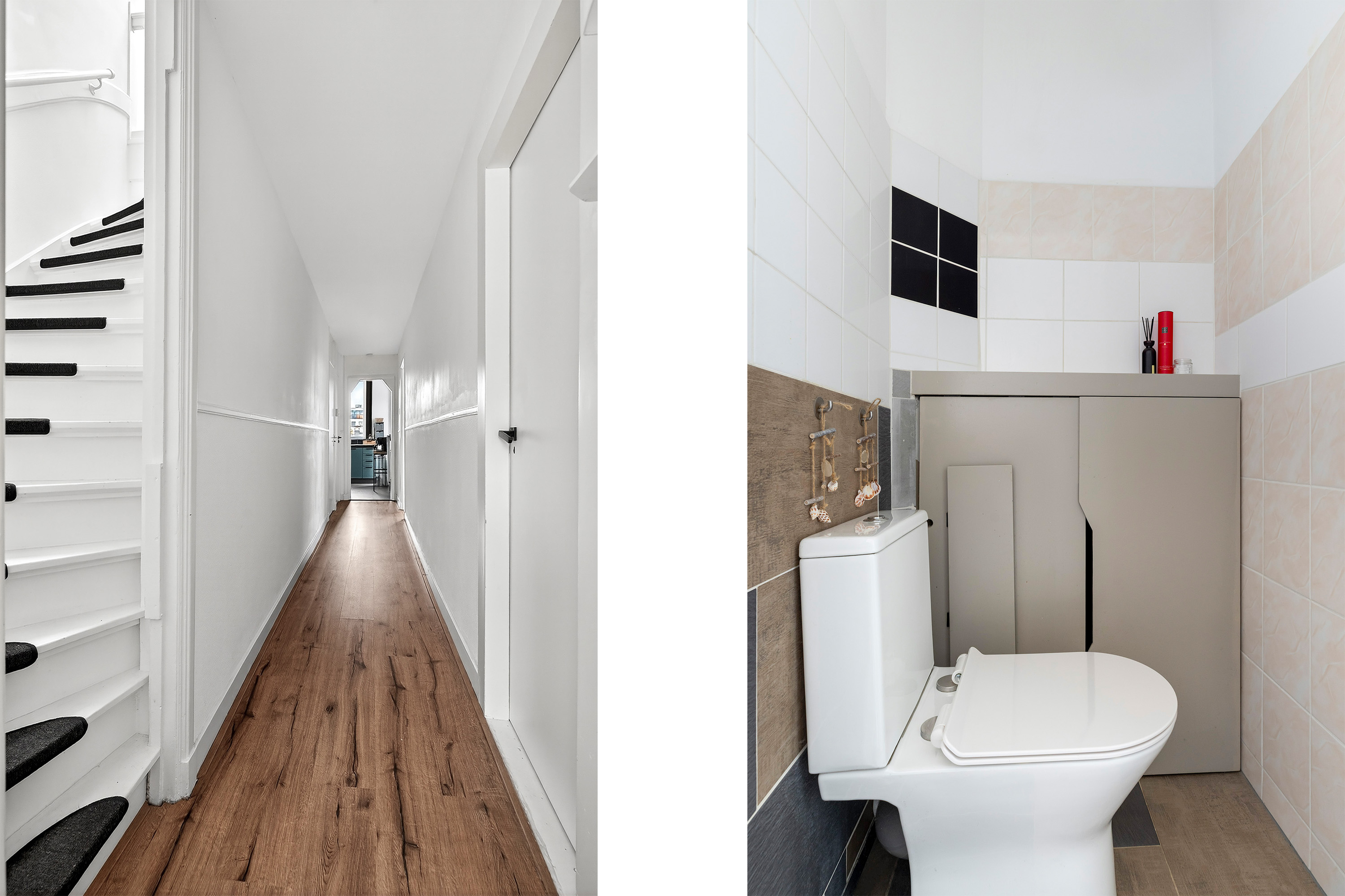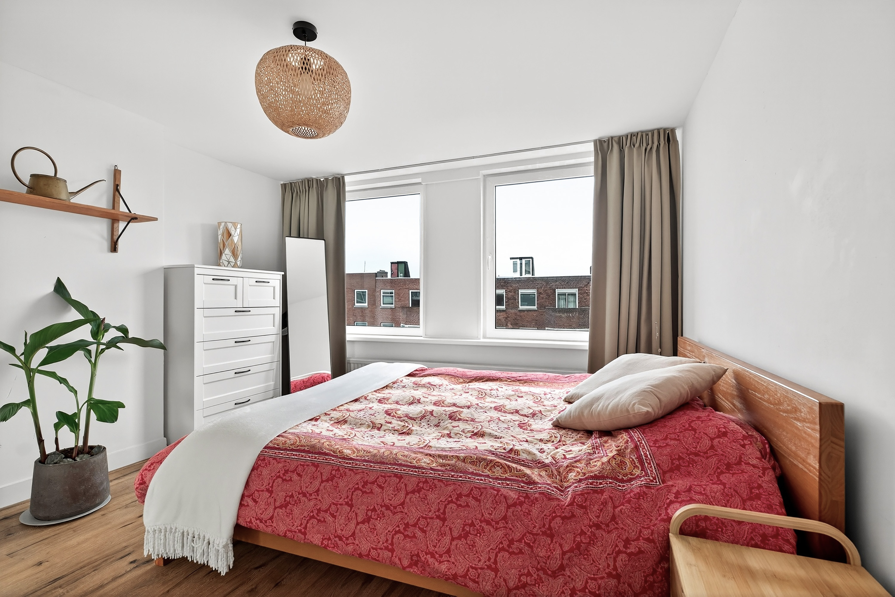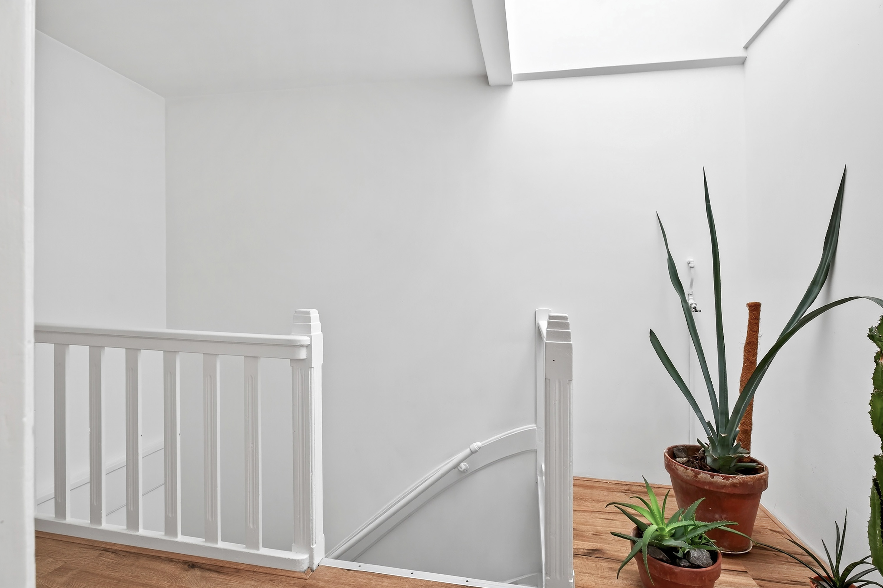 De derde verdieping beschikt over twee slaapkamers, waaronder een royale kamer aan de voorzijde met een nokhoogte van 2,20 meter. Deze ruimte is perfect als hoofdslaapkamer. Daarnaast is er een tweede, compacte slaapkamer. Verder vind je hier de badkamer, voorzien van een dubbele wastafel en douche.