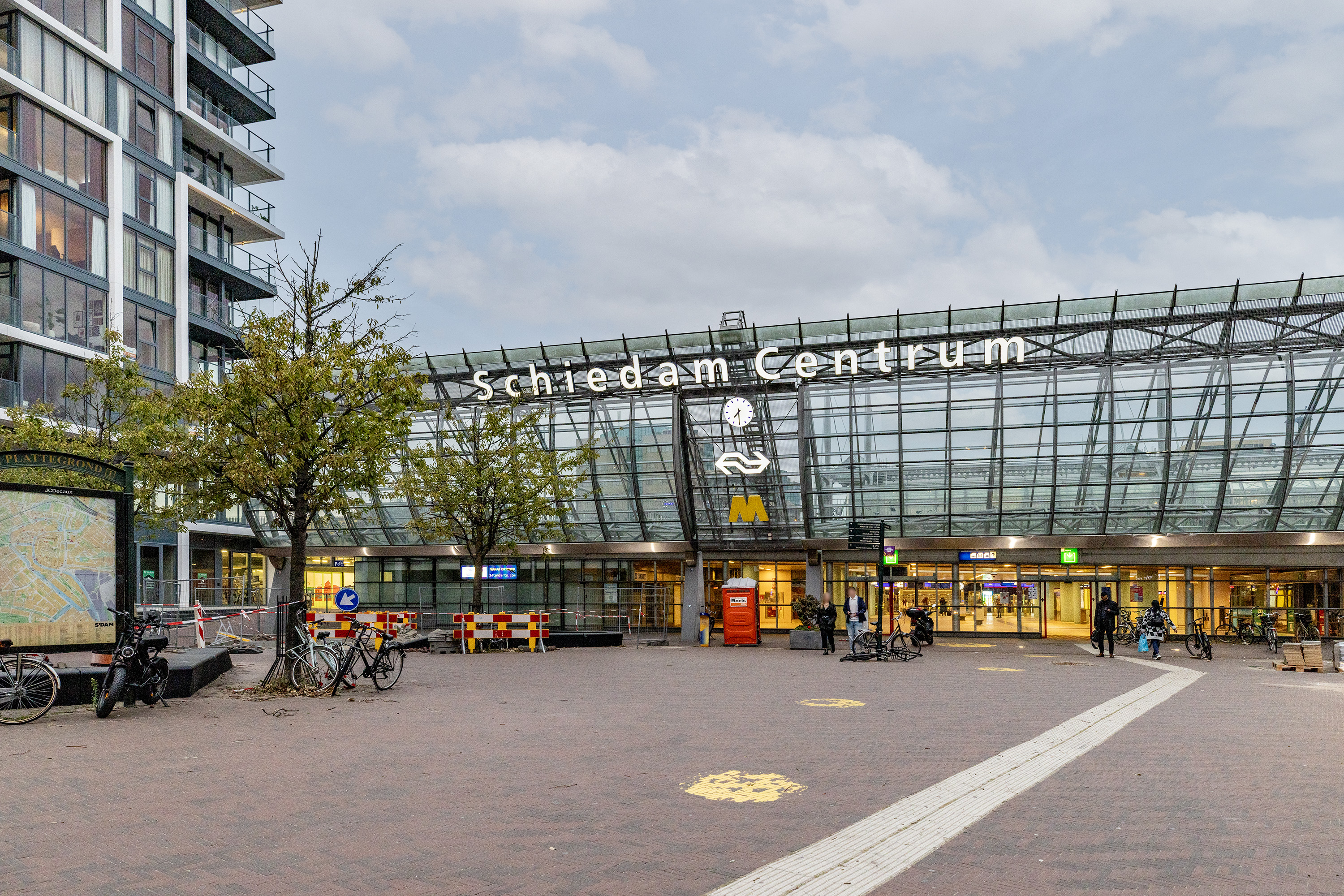 De Professor Kamerlingh Onneslaan ligt in een levendige en uitstekend verbonden wijk, waar alle voorzieningen letterlijk om de hoek liggen. Op loopafstand vind je station Schiedam Centrum met directe treinen naar Rotterdam Centraal (in 4 min), Amsterdam, Delft, Den Haag en Schiphol, diverse winkels voor de dagelijkse boodschappen, scholen, sportvoorzieningen én een bioscoop. In de straat zelf bevindt zich bovendien een bushalte. Ook het prachtige oude centrum met zijn grachten, herenhuizen en molens ligt vlakbij. Hier geniet je van een steeds breder aanbod aan horeca, met gezellige cafés en restaurants die de buurt een frisse en levendige sfeer geven. Dankzij de uitstekende openbaarvervoersverbindingen en de nabijgelegen A20 en A13 ben je bovendien zo in Rotterdam of Den Haag.