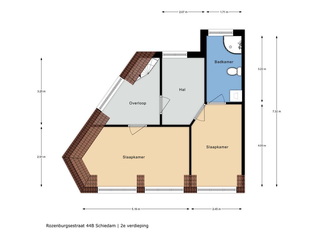 De tweede verdieping beschikt over een overloop die toegang geeft tot twee goed bemeten slaapkamers. De kamers zijn speels ingedeeld en profiteren van de karakteristieke kapvorm, wat zorgt voor een sfeervolle uitstraling.