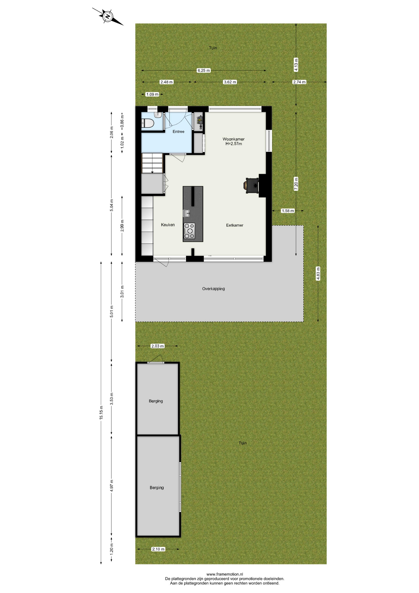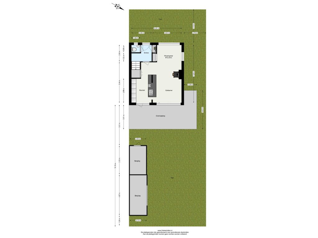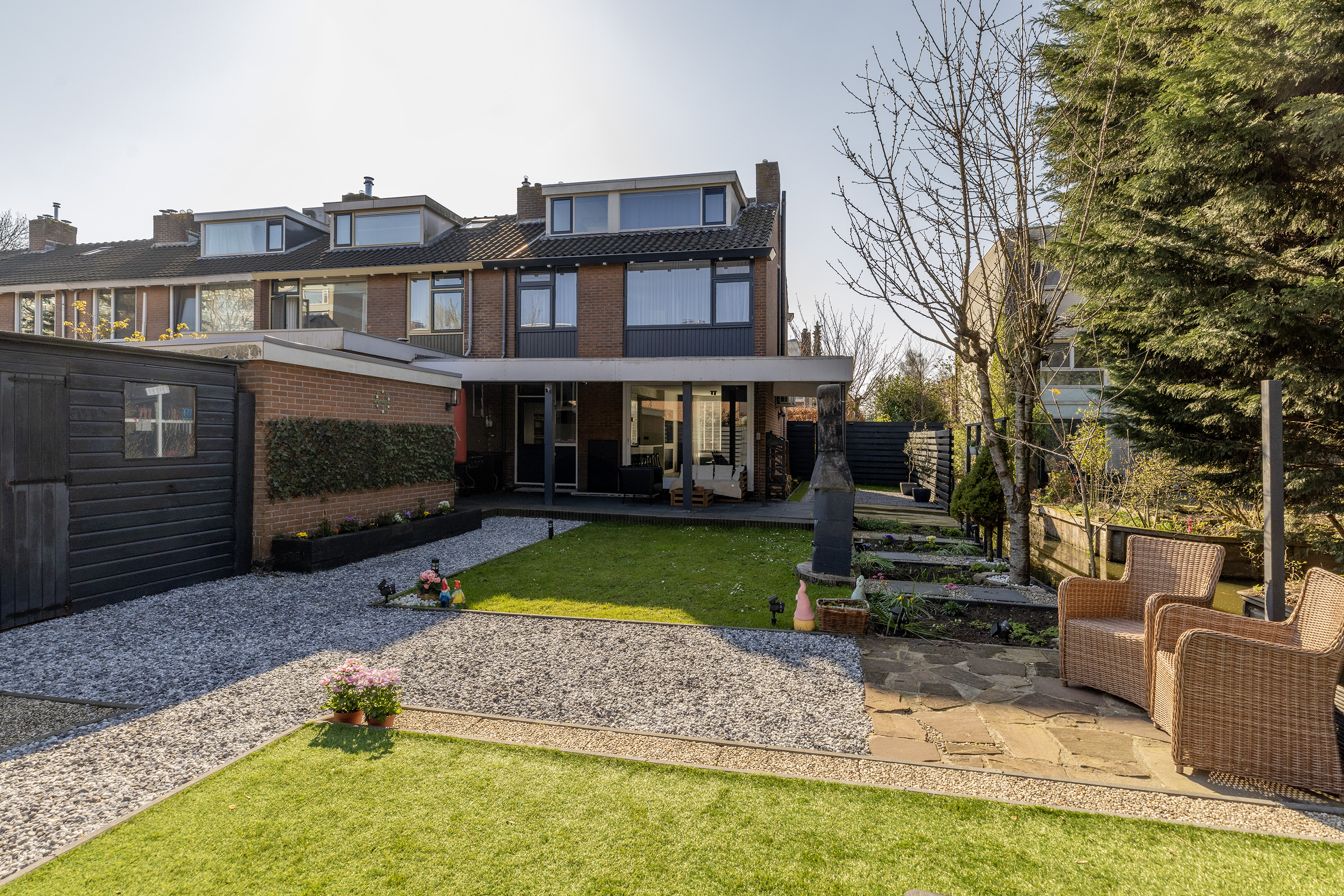Daarnaast beschikt de tuin over twee bergingen, ideaal voor opslag van fietsen, gereedschap of tuinmeubilair.