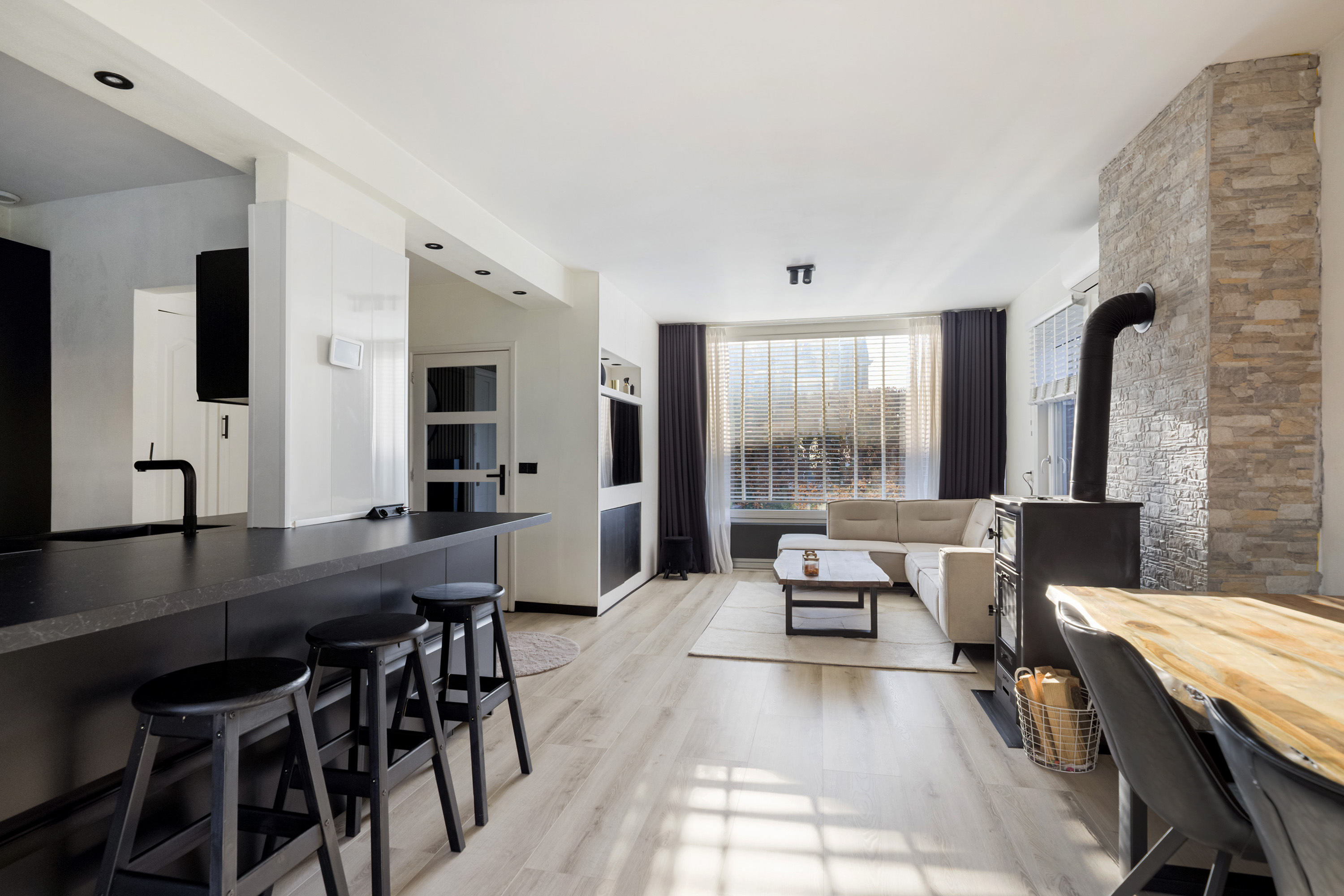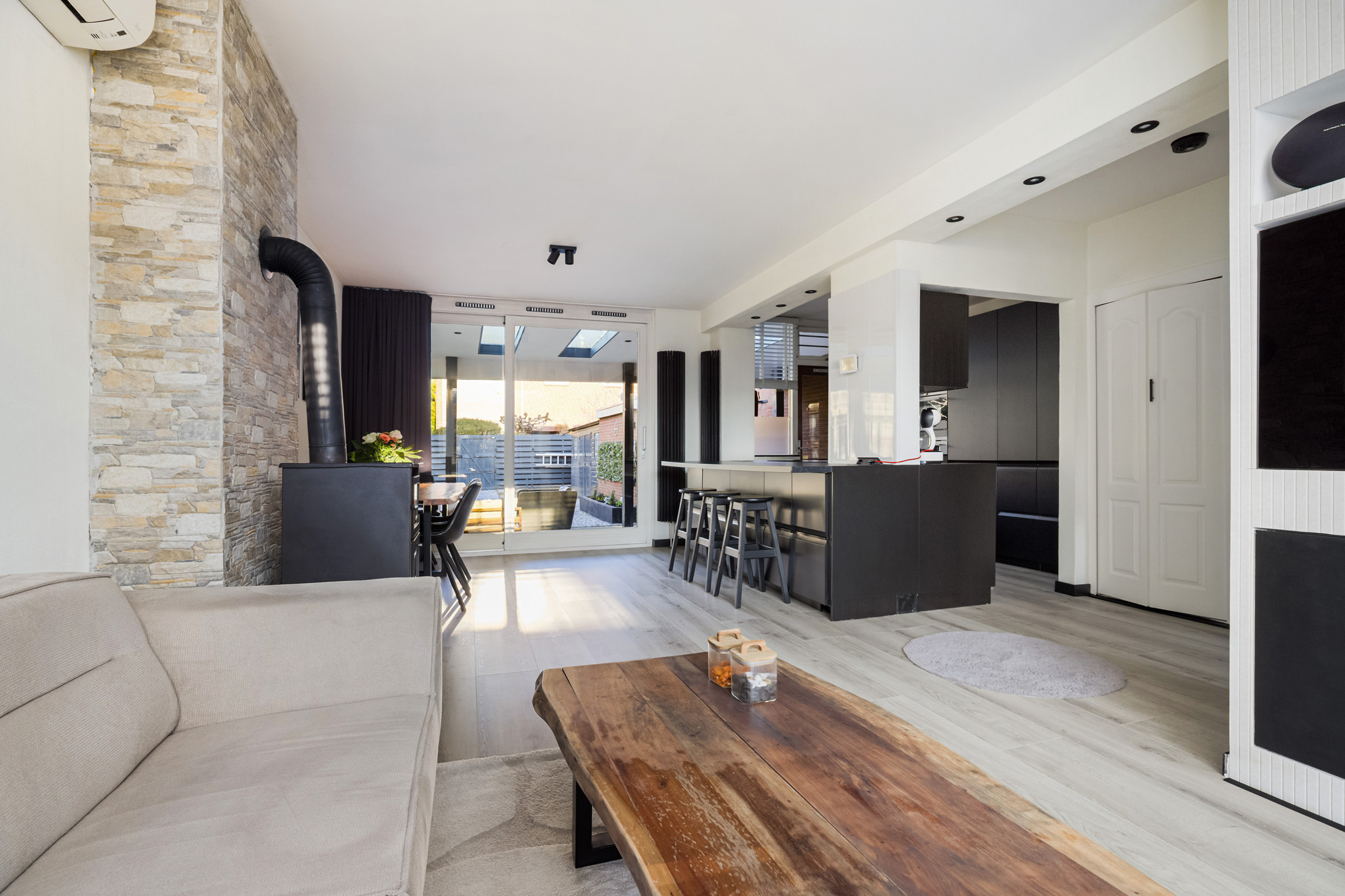- Begane grond voorzien van houtkachel en airco;