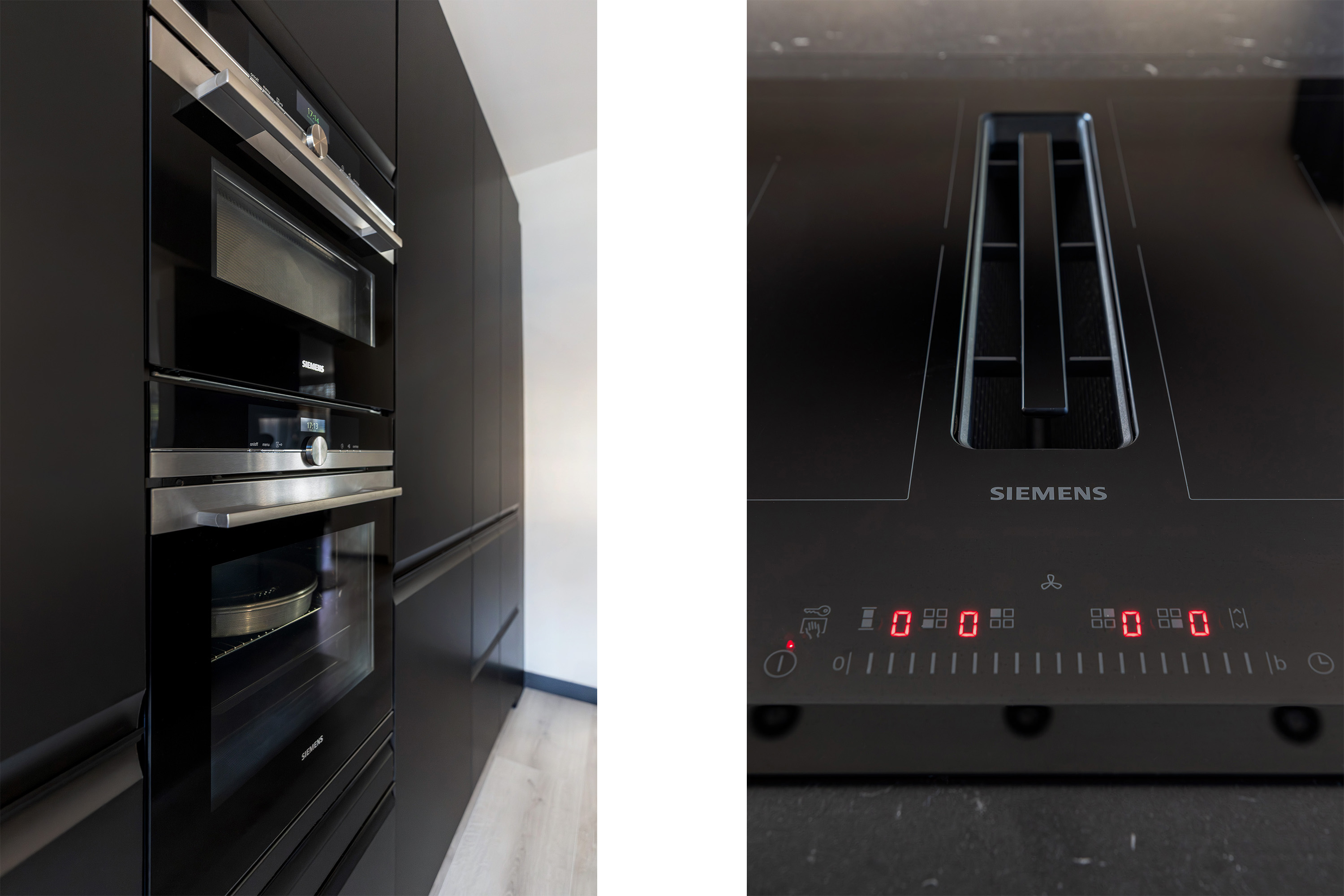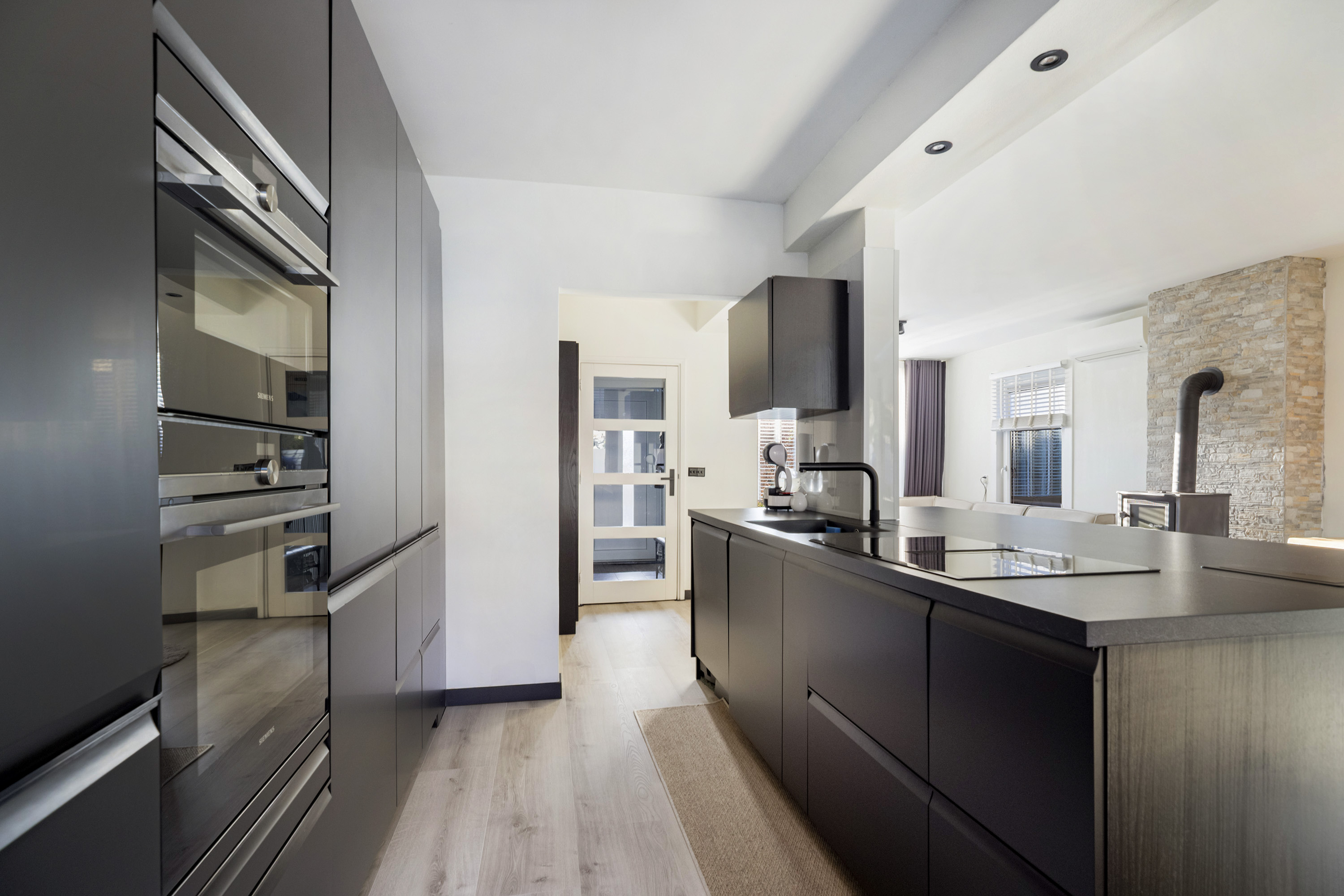 De open keuken is praktisch ingericht en voorzien van een kookeiland, wat zorgt voor een gezellige en functionele kookplek, ideaal voor wie graag kookt en gasten ontvangt.
