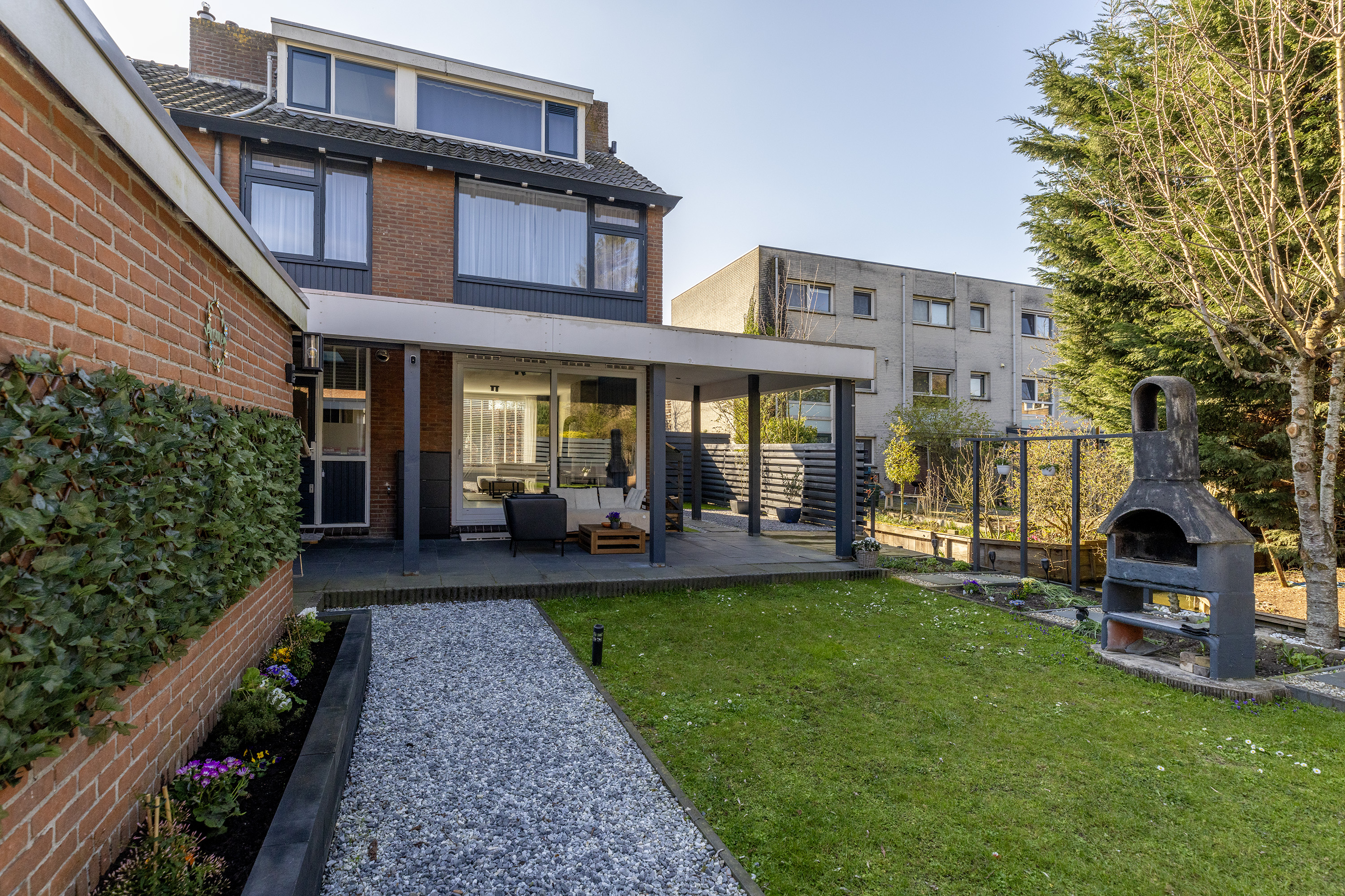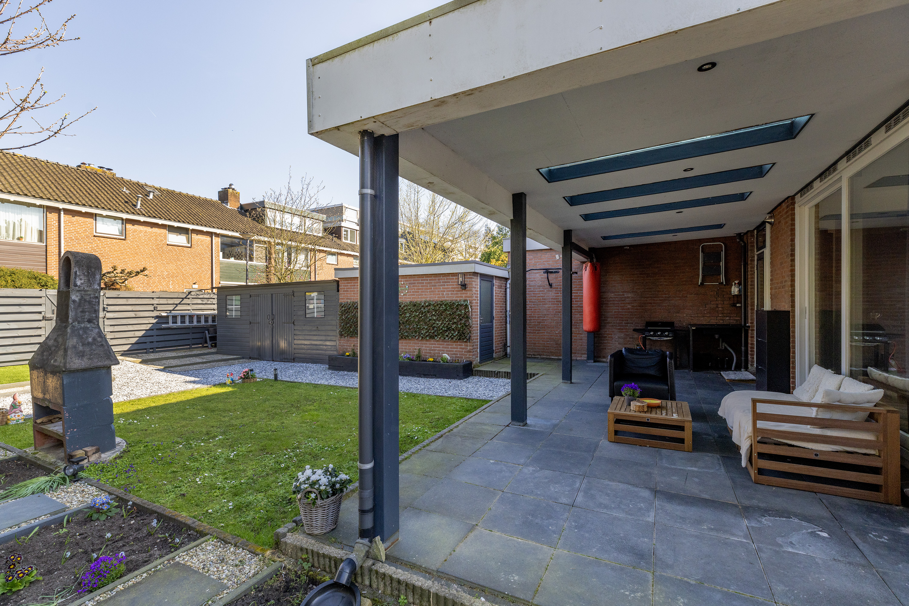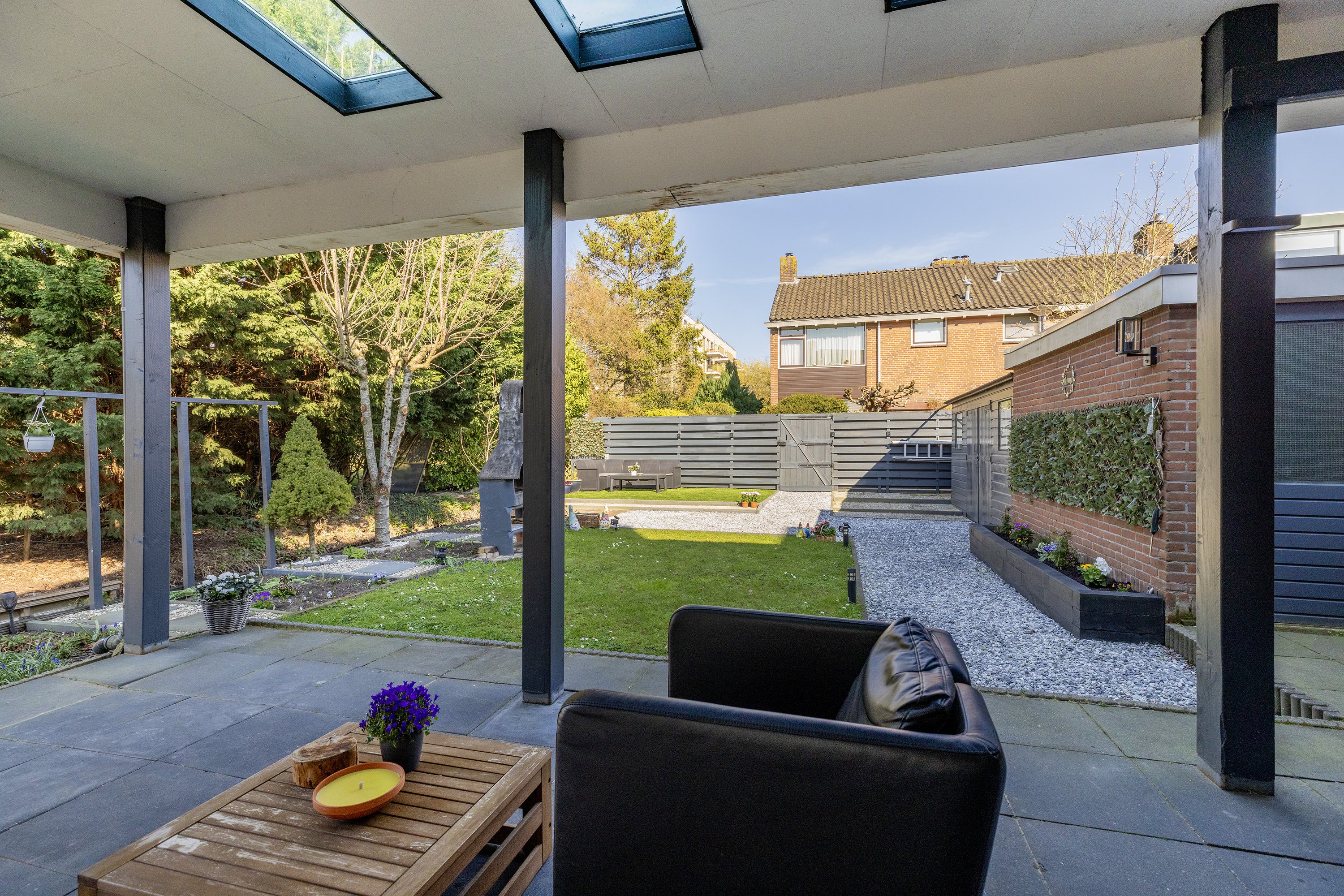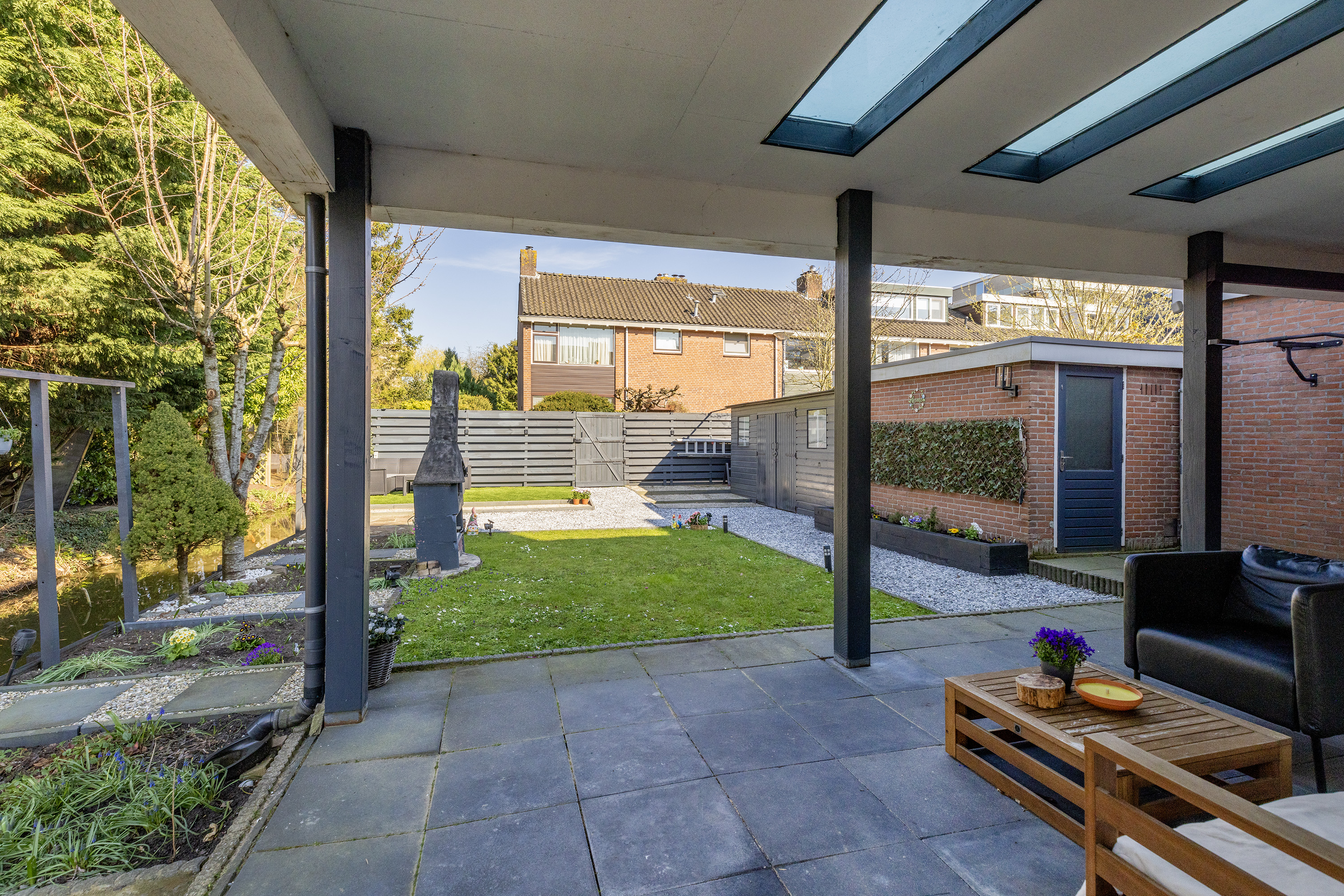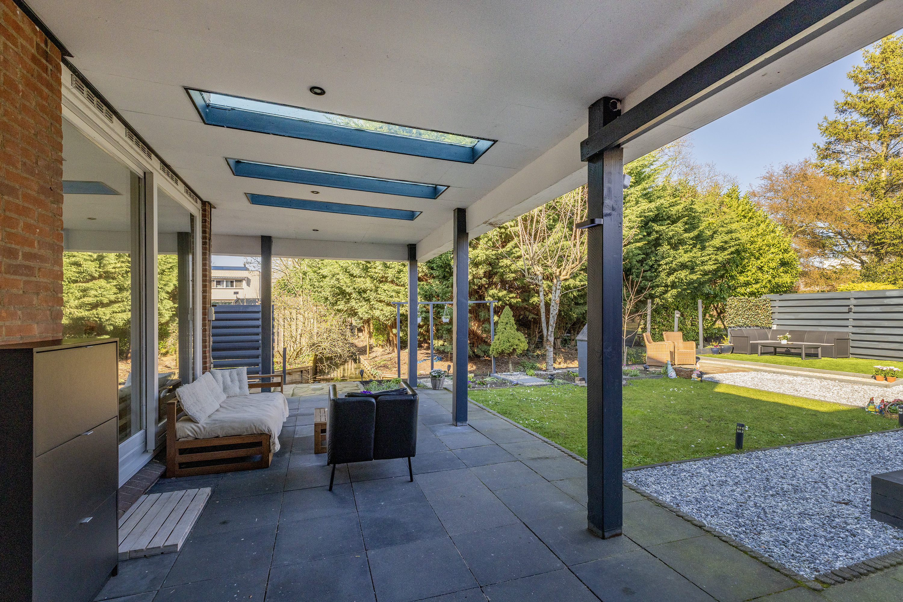 De overkapping maakt het geheel compleet en zorgt ervoor dat je het hele jaar door van deze prachtige buitenruimte kunt genieten.