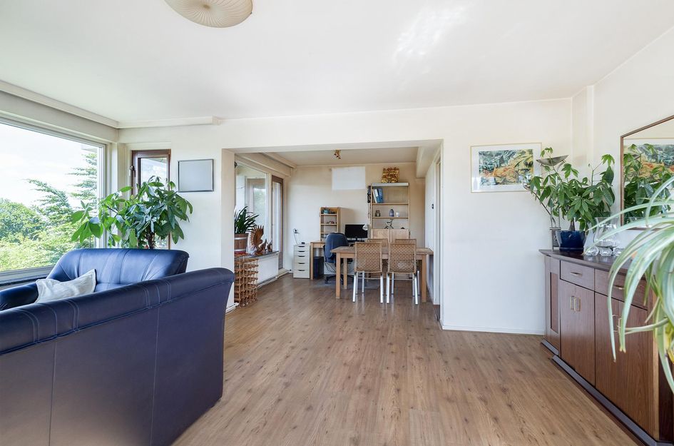 De woonkamer is ruim opgezet en grenst aan het balkon, waar je in alle rust kunt genieten van de groene omgeving. De gesloten keuken is praktisch ingedeeld en biedt voldoende opbergruimte. Verder beschikt het appartement over twee goed bemeten slaapkamers, een badkamer met douche en wastafel, en een separaat toilet. De indeling is functioneel en de ruimtes voelen licht en luchtig aan.