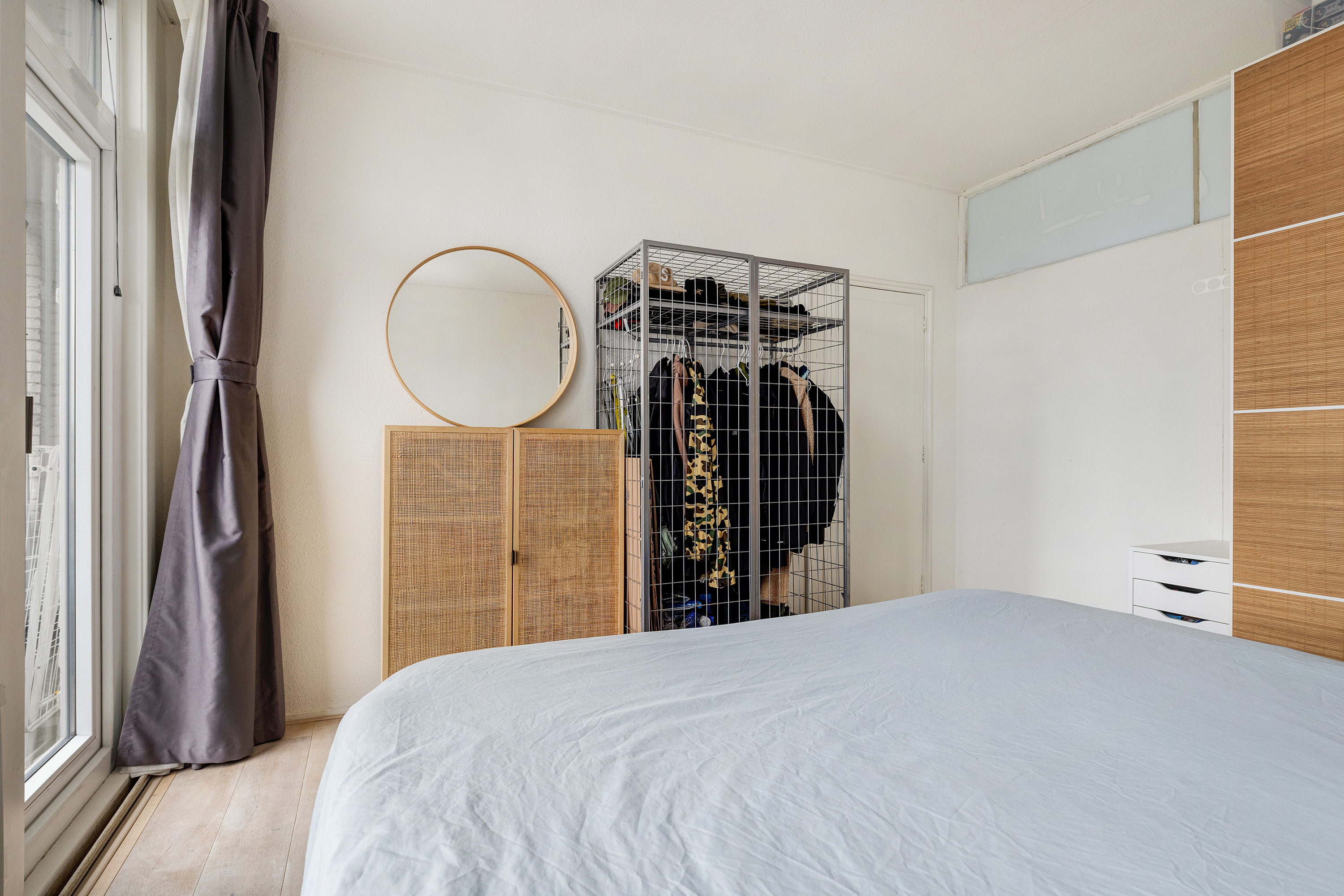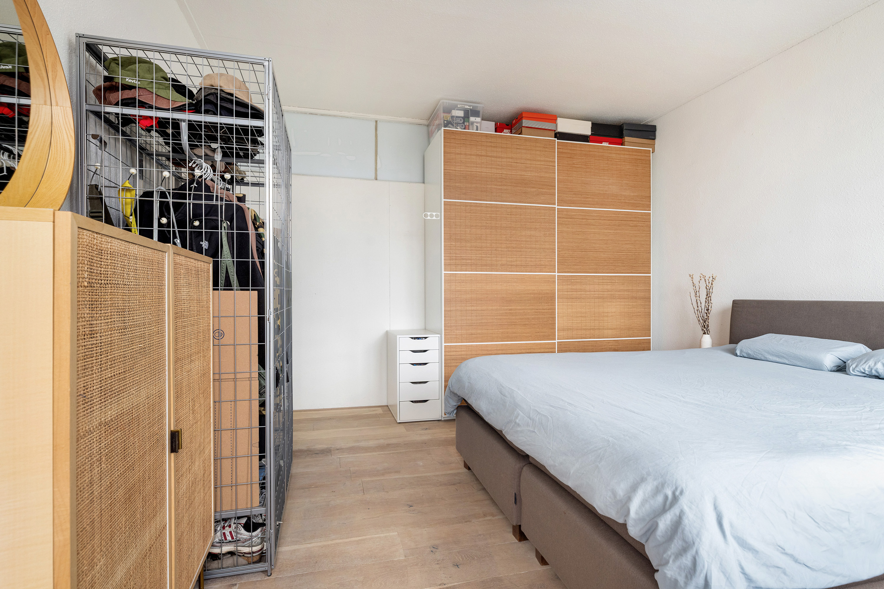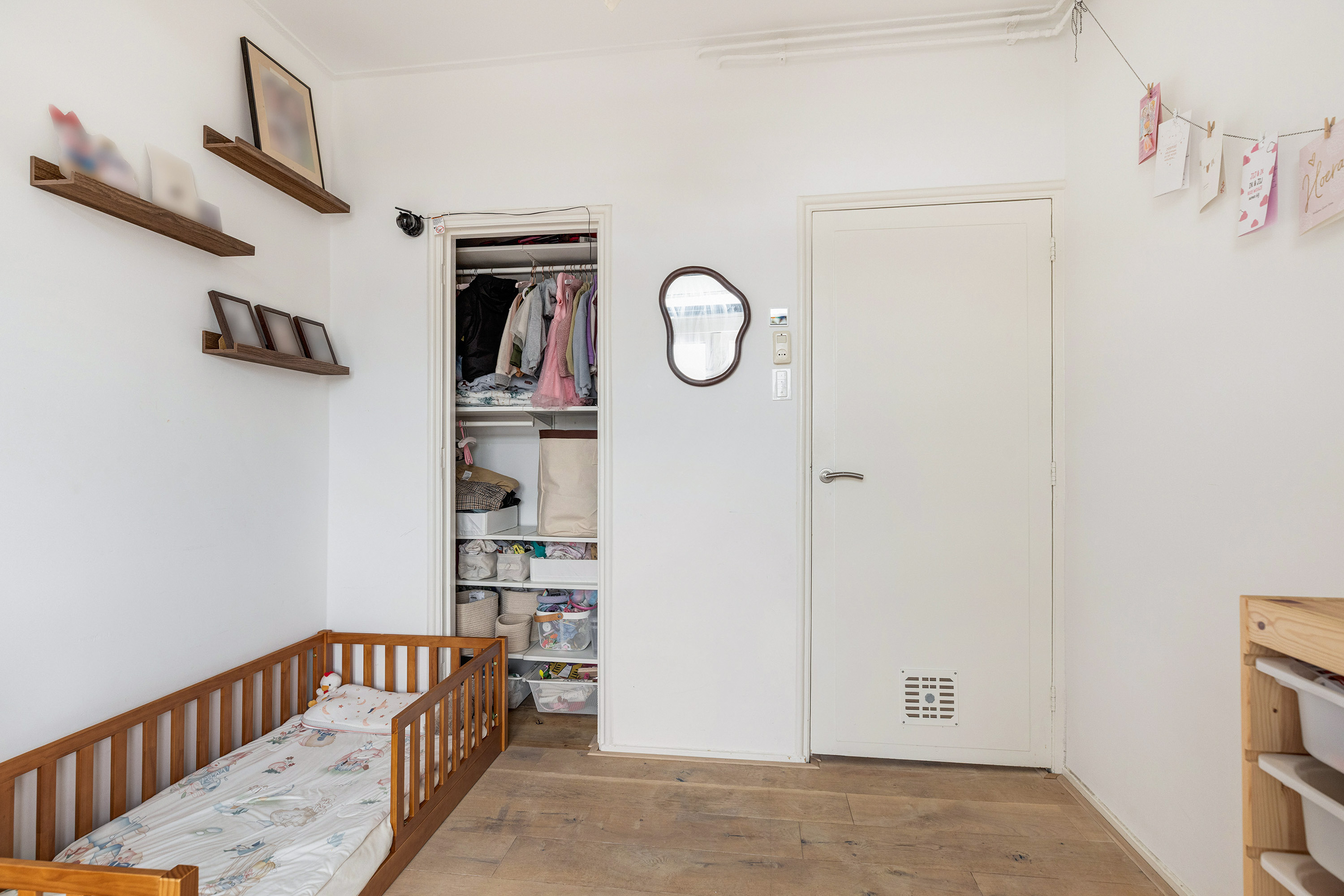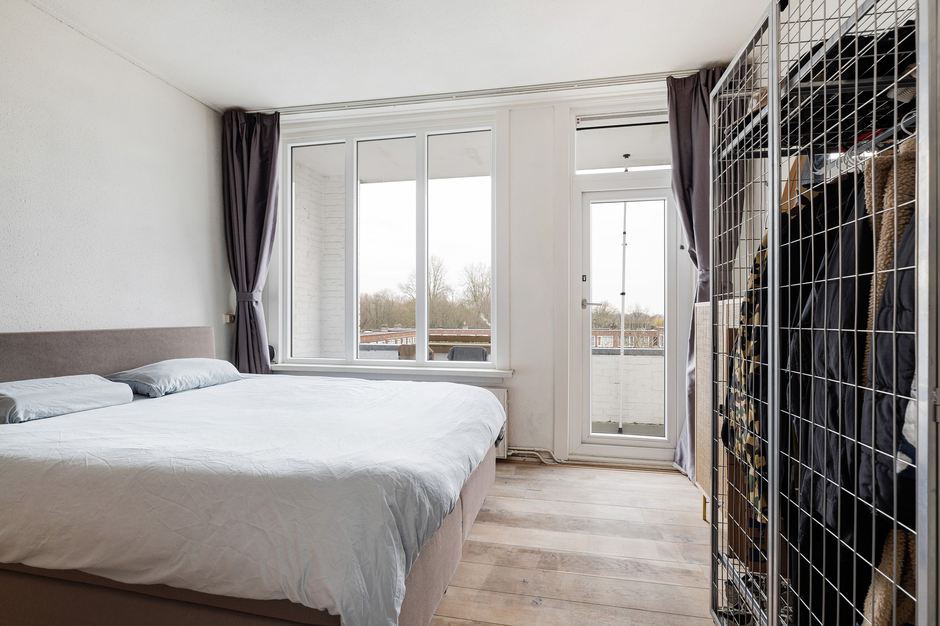 Aan de achterzijde bevinden zich twee slaapkamers. De ruime hoofdslaapkamer biedt directe toegang tot het balkon – een fijne plek om in alle rust van de buitenlucht te genieten. De tweede slaapkamer is ideaal als werk-, kinder- of logeerkamer.