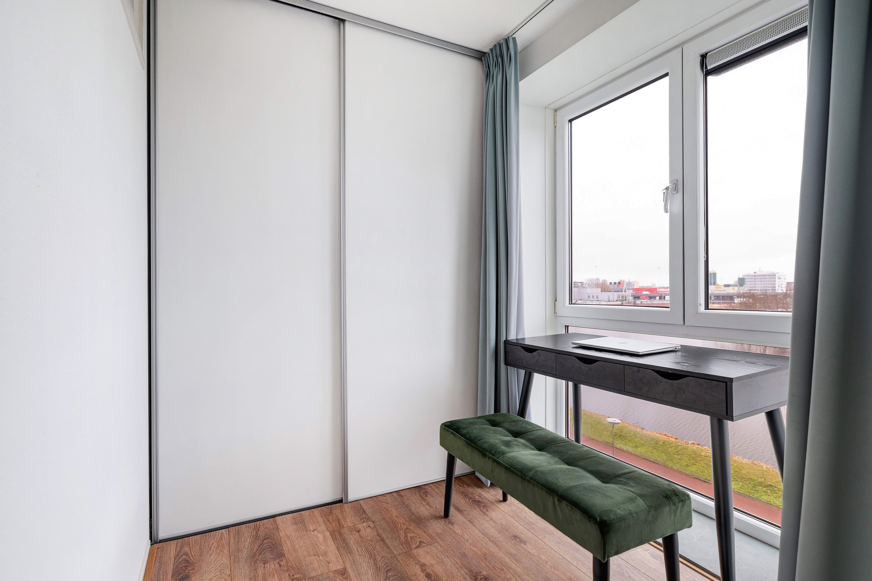 De tweede slaapkamer is gelegen aan de Schiezijde en biedt een prachtig uitzicht over het water. Deze kamer beschikt daarnaast over een extra zijkamer (loggia), waar u in de zomer heerlijk kunt zitten. Deze extra kamer kan bovendien als werkkamer worden gebruikt en beschikt over een inbouwkast.