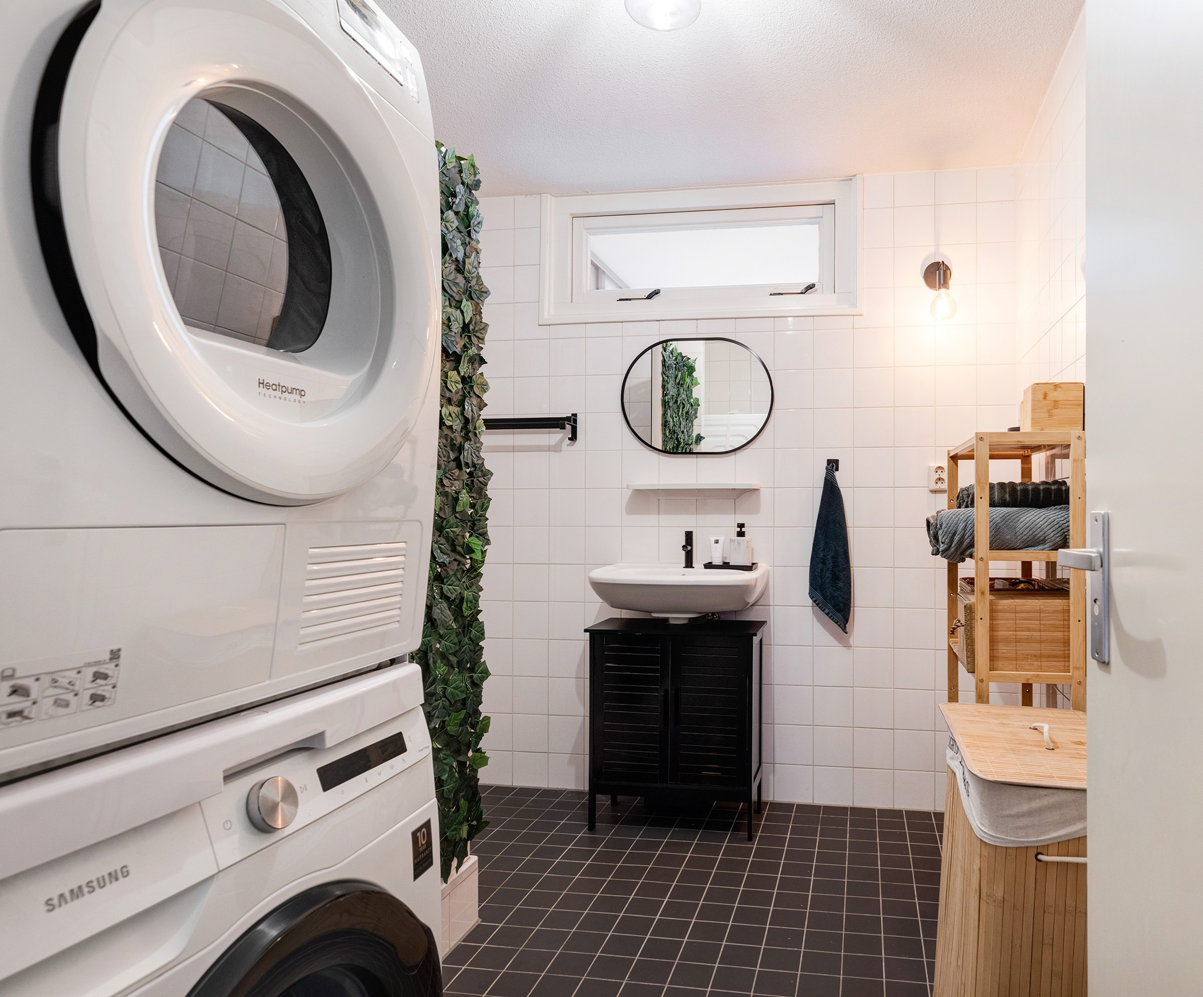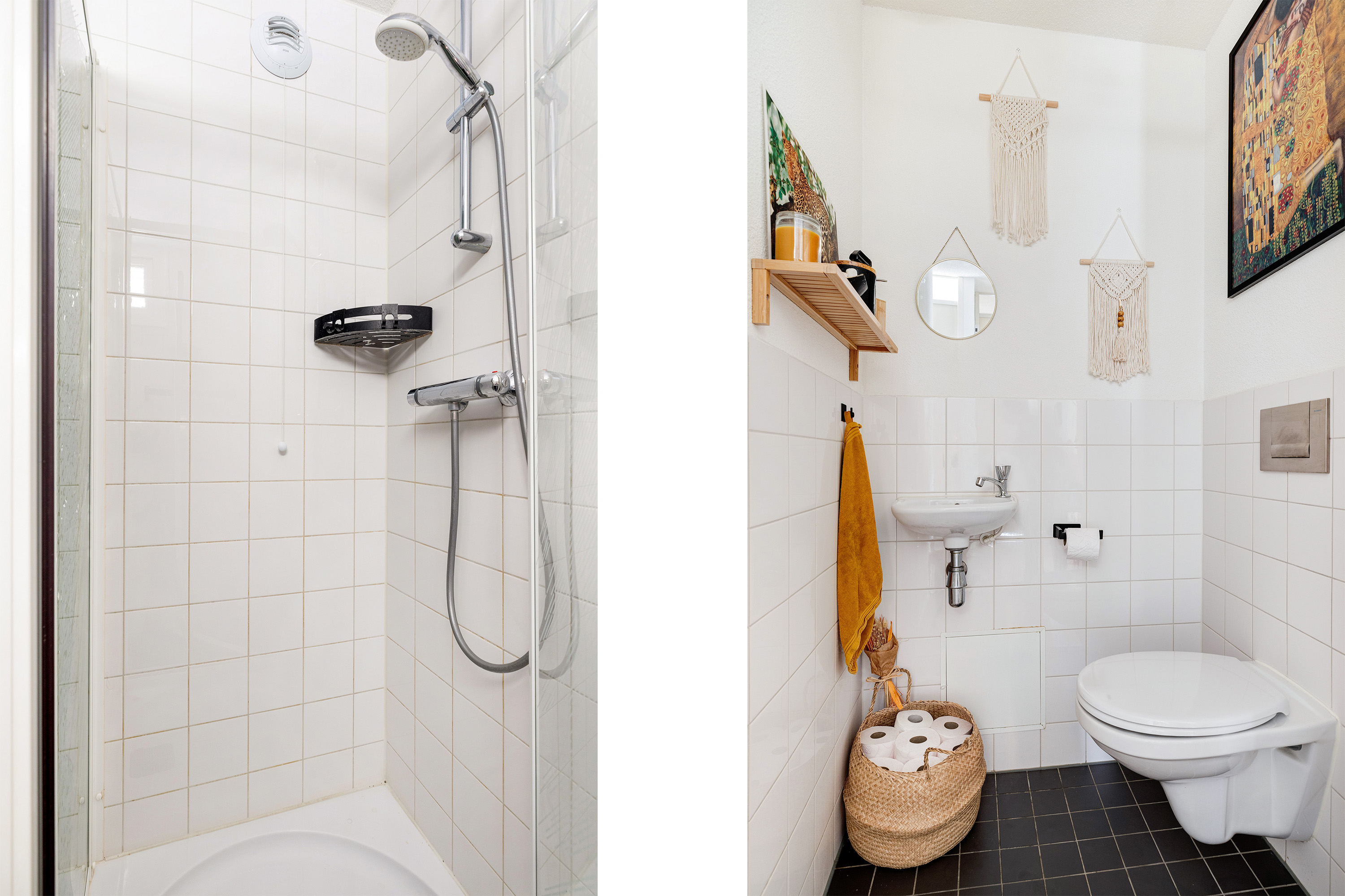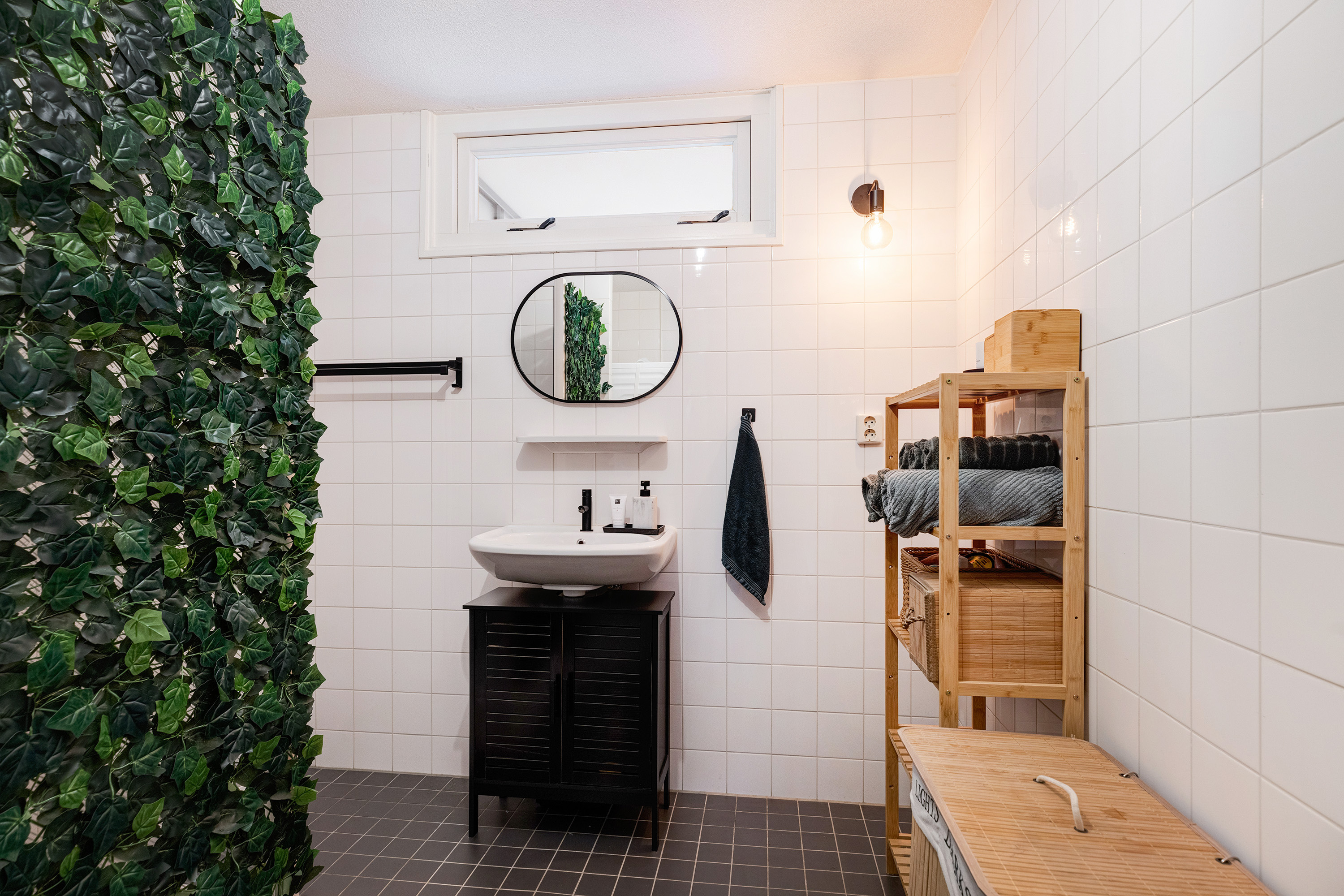 De badkamer is verzorgd uitgevoerd en voorzien van een wastafel, douche en wasmachineaansluiting. Tevens is er een separaat toilet met fontein aanwezig.
