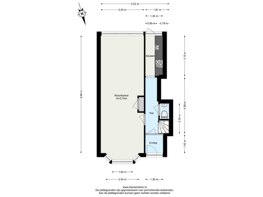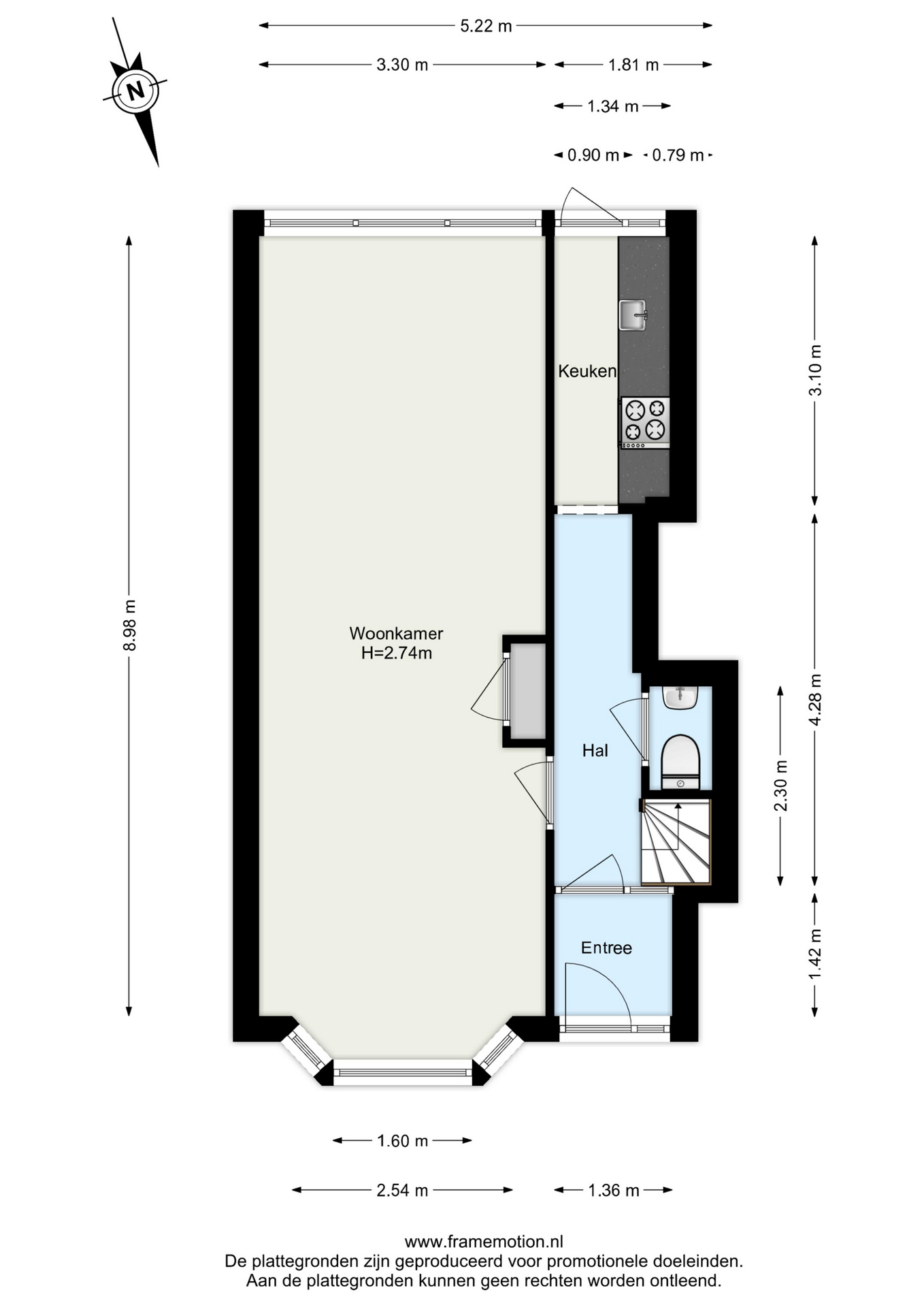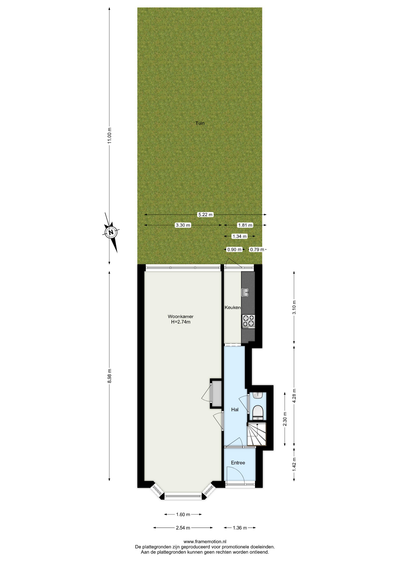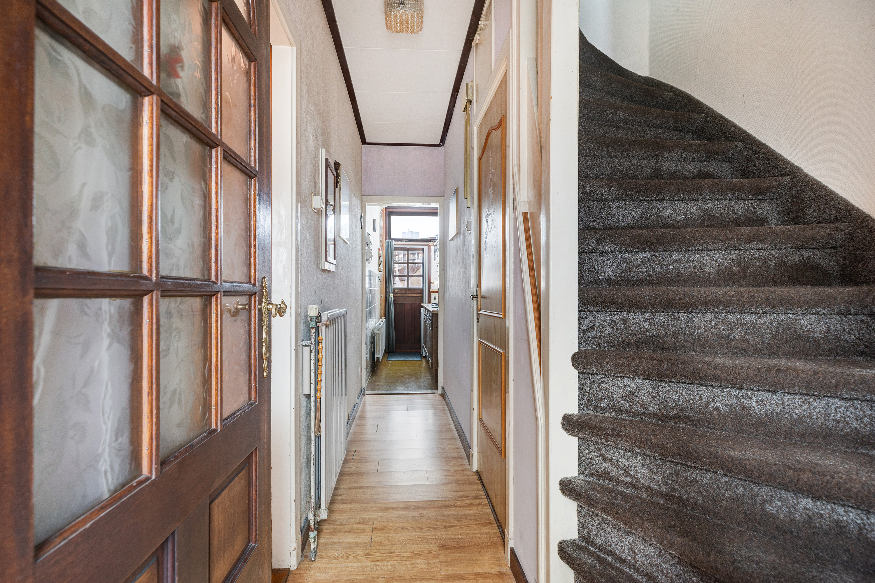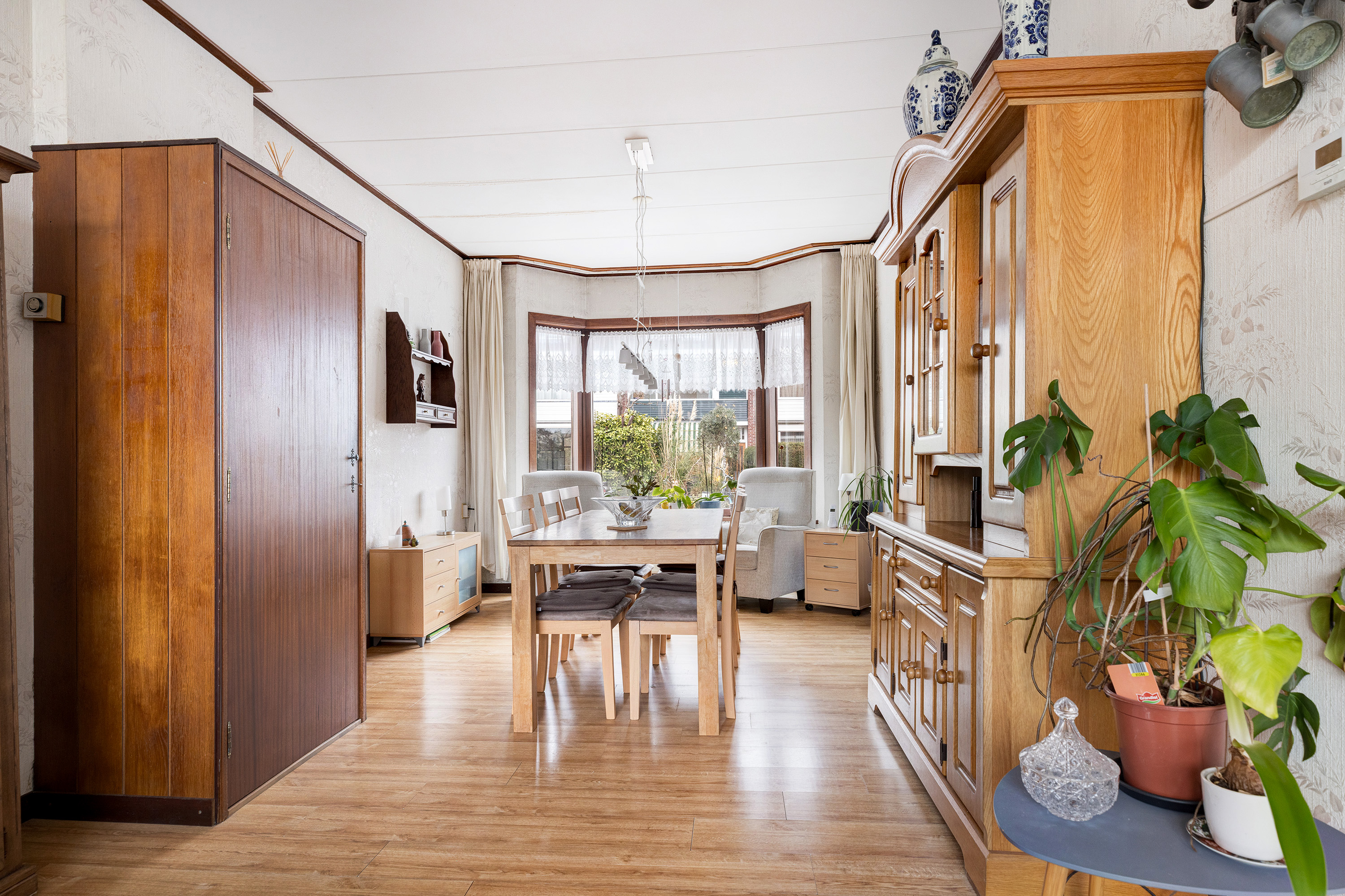 Via de entree komt u in de hal met meterkast, toilet en trapopgang. Vanuit hier bereikt u de royale woonkamer met een aangename plafondhoogte, die zich uitstrekt over vrijwel de gehele lengte van de woning. De woonkamer biedt volop mogelijkheden voor een ruime zit- en eethoek en staat in verbinding met de achterzijde van de woning.